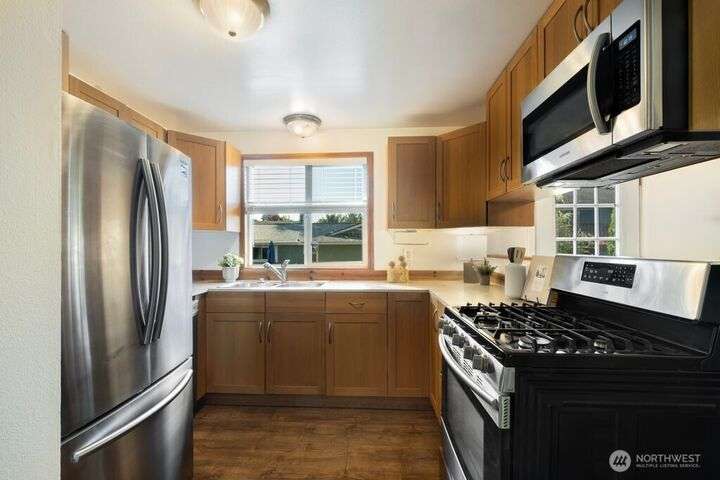 Meticulously maintained home w/thoughtful updates for everyday living. The beautifully remodeled kitchen features stainless steel appliances, newer cabinets, & gas cooking. Generous living & dining space, king-sized primary, spacious bedrooms, fully refurbished bathroom + abundant storage throughout. Fun, fully fenced backyard perfect for BBQing, entertaining, pets & playtime. Excellent garden space & huge Trex-style deck. Newer roof, hardy plank & cedar shake siding plus tons of extras add timeless charm & peace of mind. A large 2-car garage w/shop space, attic storage + Extra parking for RV or boat, all tucked in a quiet cul-de-sac. Centrally located close to I-5, SR 9, great food, shops, service & transportation. Love where you live!