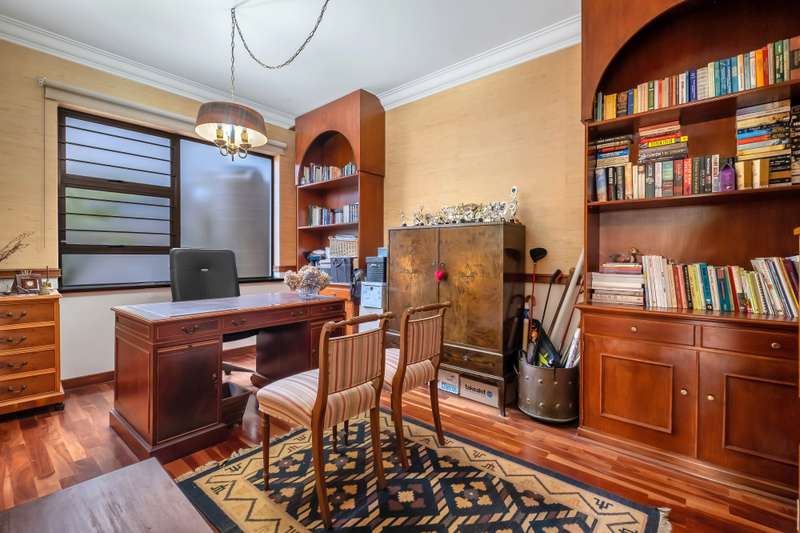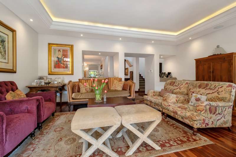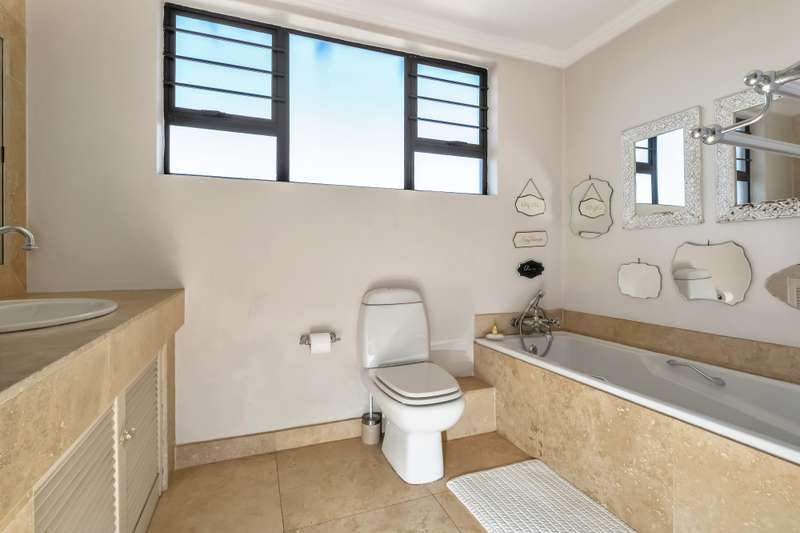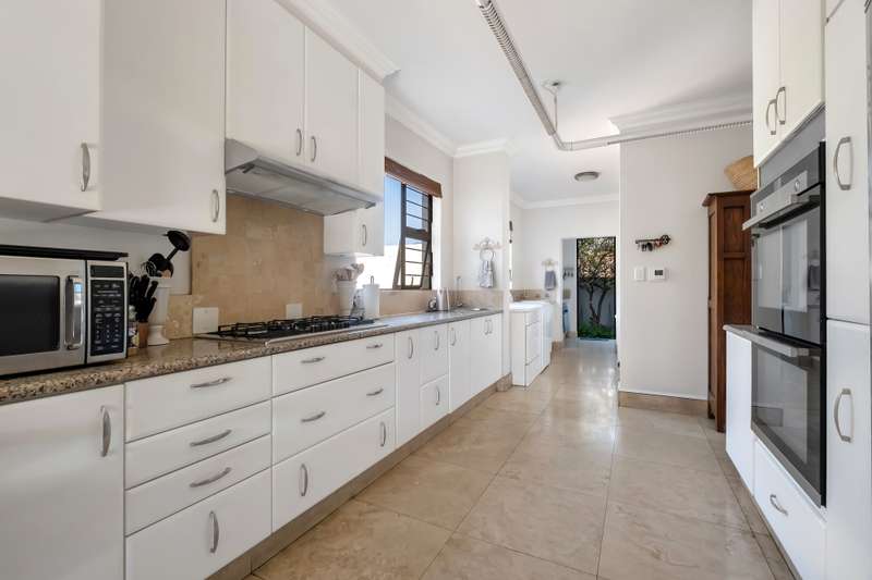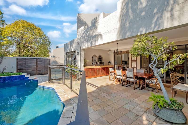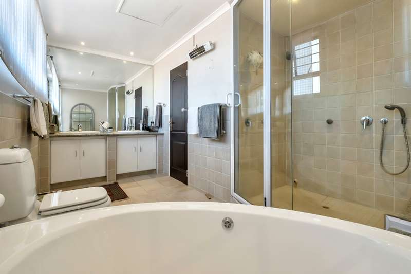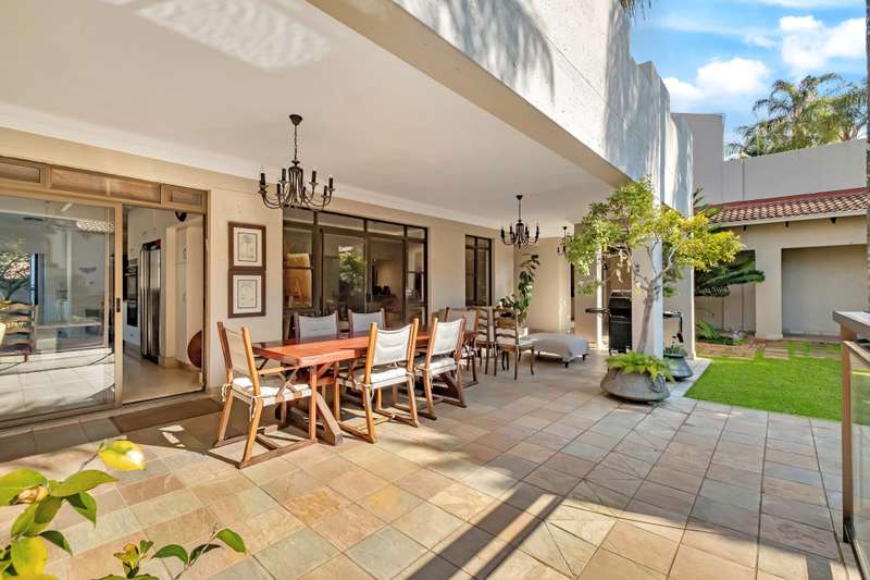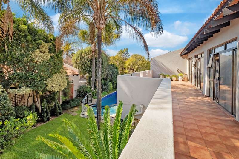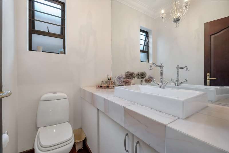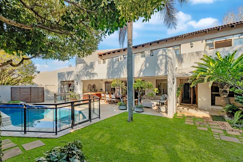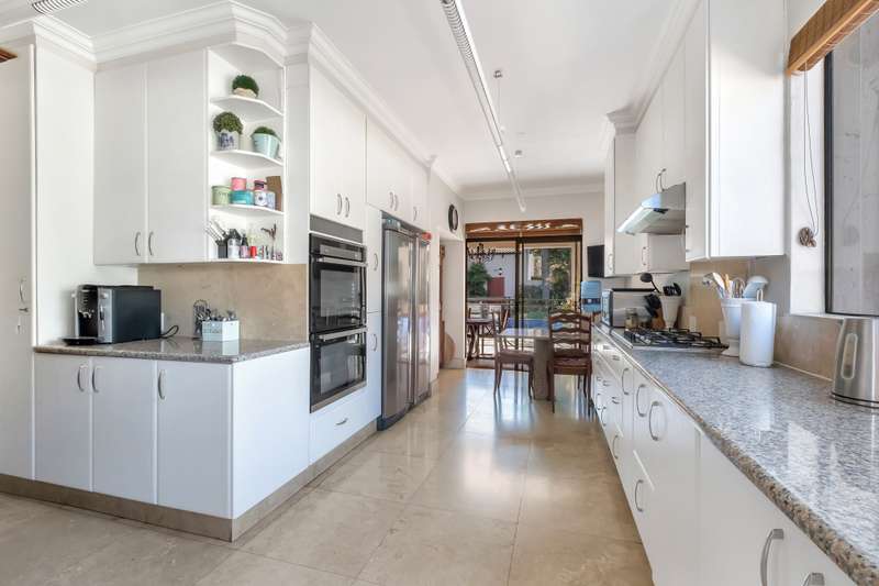 Occupying an impressive 547 square meters under roof, this exceptional residence offers the rare combination of expansive proportions, refined finishes, and every modern convenience. Designed for both grand entertaining and relaxed family living, the home unfolds across light-filled interiors with a seamless flow to resort-style outdoor spaces. The five-bedroom layout includes two ensuite retreats and two additional bathrooms, complemented by a stylish guest cloakroom. A thoughtfully positioned ground-floor ensuite bedroom provides the perfect haven for visiting guests or multi-generational living, offering easy accessibility without compromising privacy. At the heart of the home, a chef’s kitchen of exceptional scale features a premium gas hob, abundant storage, travertine floors with granite tops that complement one another and a generous scullery ensuring no limited to your required appliances. The living and dining areas open effortlessly to an enormous, covered patio, perfectly proportioned to host both a large dining suite and a separate lounge area. Here, views over the heated swimming pool and manicured, established gardens create an atmosphere of year-round leisure. Upstairs, a pajama lounge provides a relaxed secondary living space, while the main suite is a sanctuary in itself — a vast bedroom with a walk-through dressing area, a luxurious corner bath, and a steam-room shower for spa-like indulgence. A sweeping balcony spans the front of the home, offering tranquil vistas over the gardens and pool. Practicality is seamlessly woven into the luxury: staff accommodation, two backup water tanks with filtration, solar panels, a 5 kVA inverter, and five air-conditioning units ensure uninterrupted comfort regardless of municipal supply or load shedding. This is more than a home — it’s a statement of scale, comfort, and foresight, ideally suited to families who value space, style, and effortless living. Contact Kevin today to book your private viewing.