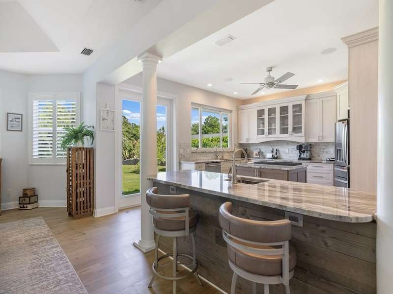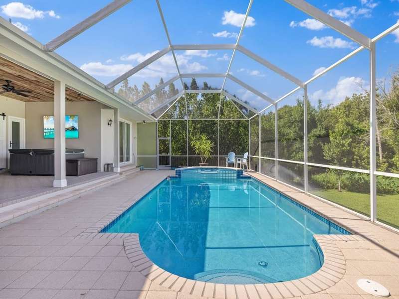 Majestic Florida home on1.22 acres along the peaceful Sebastian River w/private dock. Enjoy a crystal clear pool, spa, firepit, summer kitchen, & lighted paver patio w/ screen enclosure. This 4BR, 3.5BA, 3,884 sq. ft. home features formal living & dining, family room, office/den, laundry room, & 3-car deep garage w/epoxy floors. Recent updates include roof, impact windows, doors & sliders, A/C, pool pump, lighted paver walking path to dock, quartz counters in Laundry & Owner Bath, Refrigerator & 500-gal propane tank. A rare blend of luxury, privacy, & timeless riverfront charm!