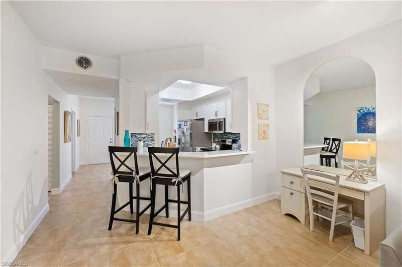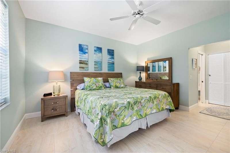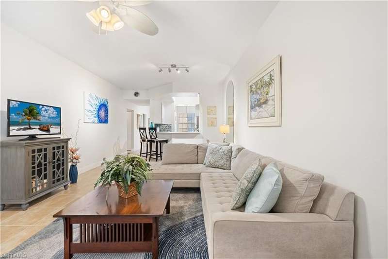 OPEN FOR 2026 Season! UPDATED and Remodeled! Just West of US 41, Wiggins Lakes: A short drive to Vanderbilt Beach, as well as the Shops, Restaurants, Movie Theatre and Whole Foods at Mercato, makes this a convenient location to enjoy Naples for your winter vacation. This immaculate, move-in ready, 1st floor, 3 bedroom/2 bathroom, condominium enjoys a quiet preserve view. Offering split bedrooms, vaulted ceilings, spacious Great Room, tiled floors throughout, large closets in each bedroom, and hurricane and thermal glass windows throughout, including the sliders on the enclosed screened Lanai. The Living Room has a comfortable L-shaped couch, two matching side chairs, lamps and accompany tables, and flat-screen TV. The Kitchen has an open concept, bar with 2 stools, and updated appliances. The Dining area had a rectangular table and seating for four. The spacious Master Suite has a King-Size bed, 2 large closets, slider doors onto the Lanai, private bath with dual sinks, walk-in shower, and a ceramic-floor tile. The 1st guest bedroom has a queen size bed, dresser; the 2nd guest bedroom has twin beds, dresser, ample closets, and they share a bathroom, with a combination tub/shower. This property has its own covered parking space with a storage unit. Amenities include a gated entry, heated pool/spa, clubhouse with bathrooms, and tennis. North Naples is close to all of the activities within Naples and Bonita Springs. Minutes from the pristine, sandy beaches, and an easy drive to South Naples' 5th Ave. and Third Street shopping, restaurants, Artis and Naples Players theatres, and more, makes this condo an ideal location to enjoy your winter or summer months.