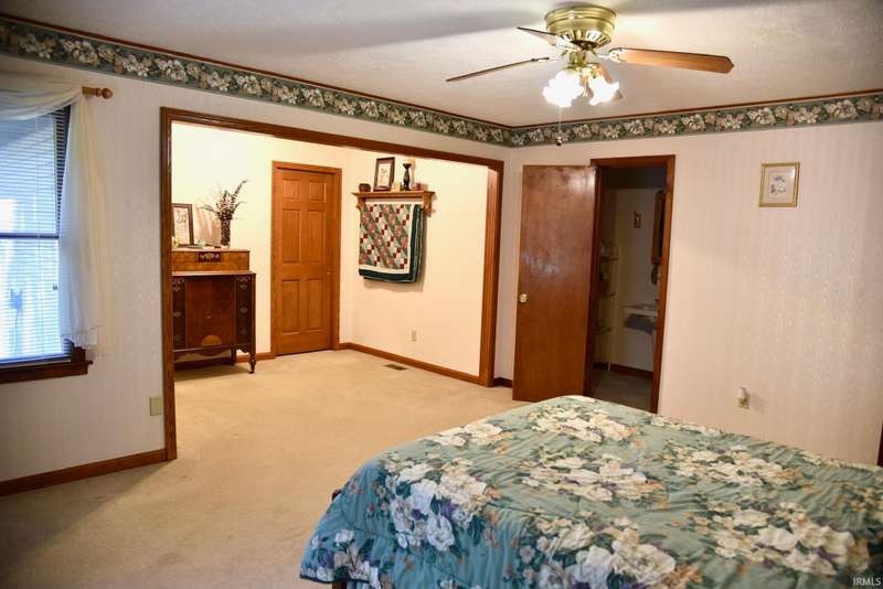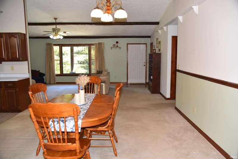 Brick Ranch open concept country location with 2 plus acres. 2 large living areas and 2 master suites. Alternate heating that includes outdoor wood boiler, and indoor propane furnace. 4 bedrooms with one being a split bedroom that includes full bath. Master bedroom comes with a full bath and whirlpool tub, 3 closets that includes a walk in closet and also there is a nice sitting area. Home comes with a HSA 7 Star upgrade Home Warranty. Close to Hwy 60 and Spring Mill State Park. Orange County Fiber ( Internet ) is hooked up at the property.