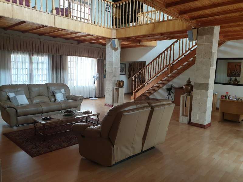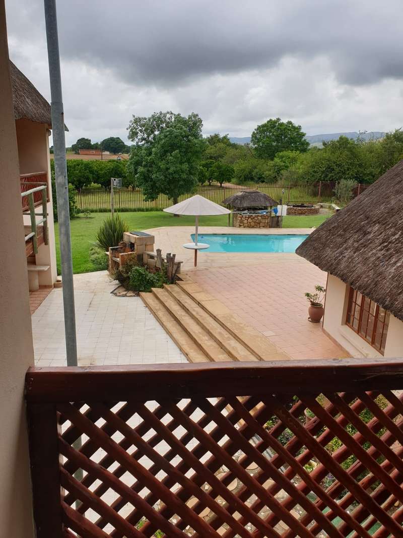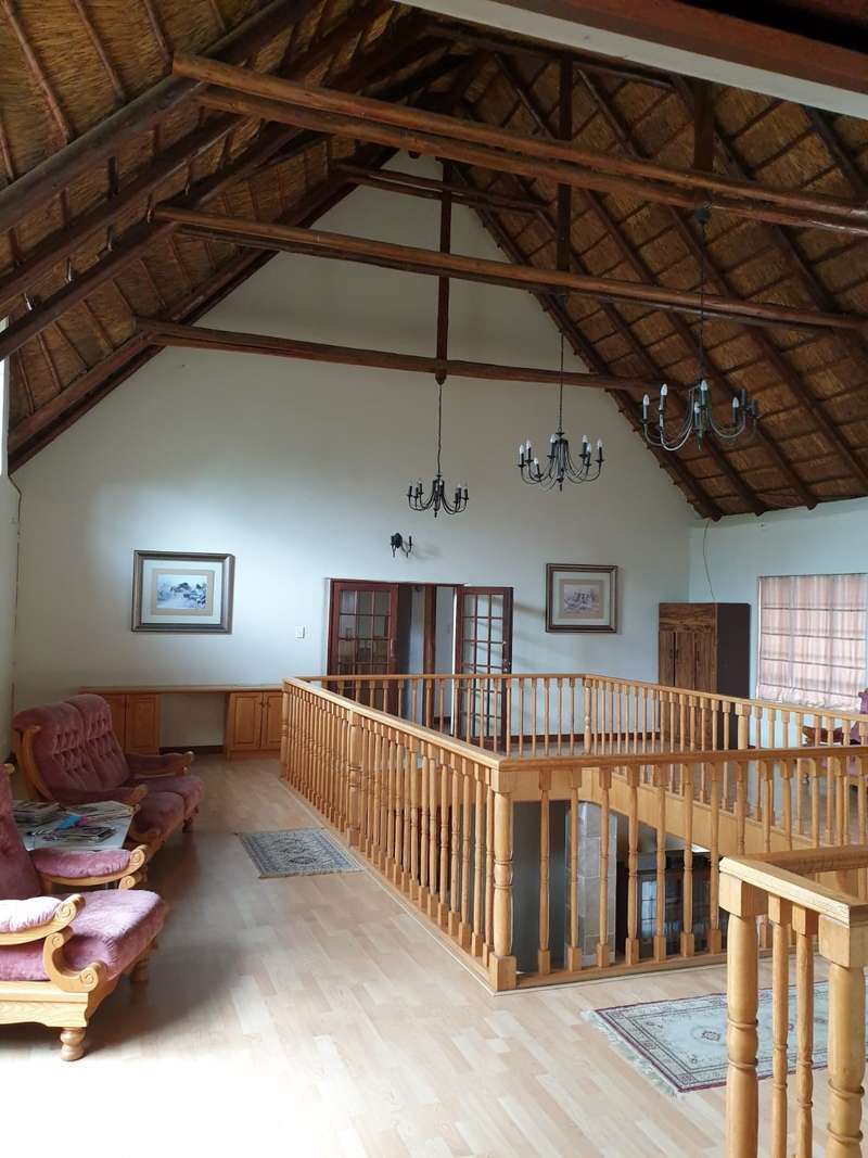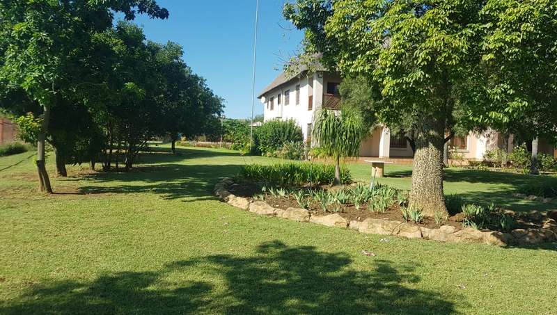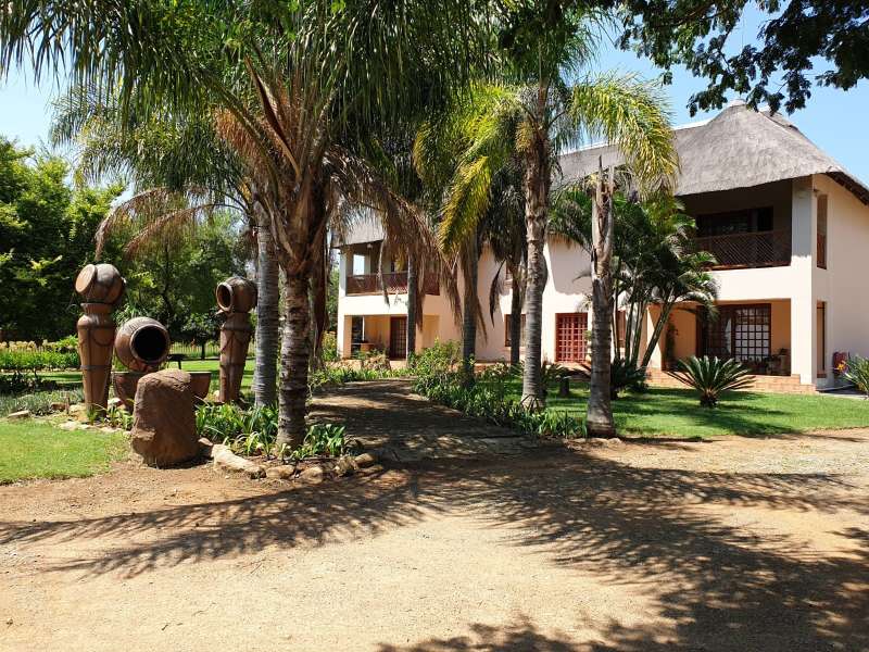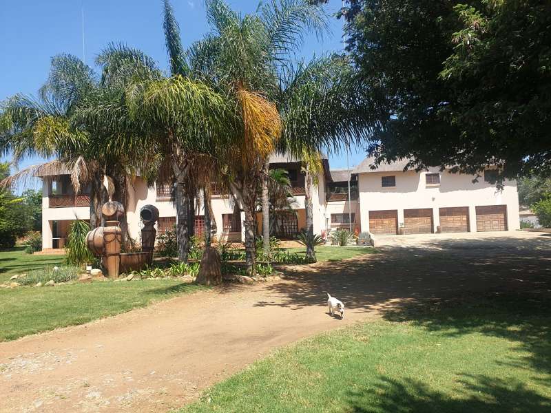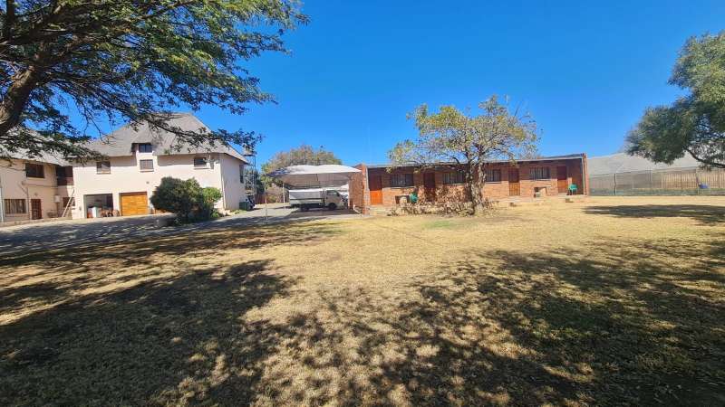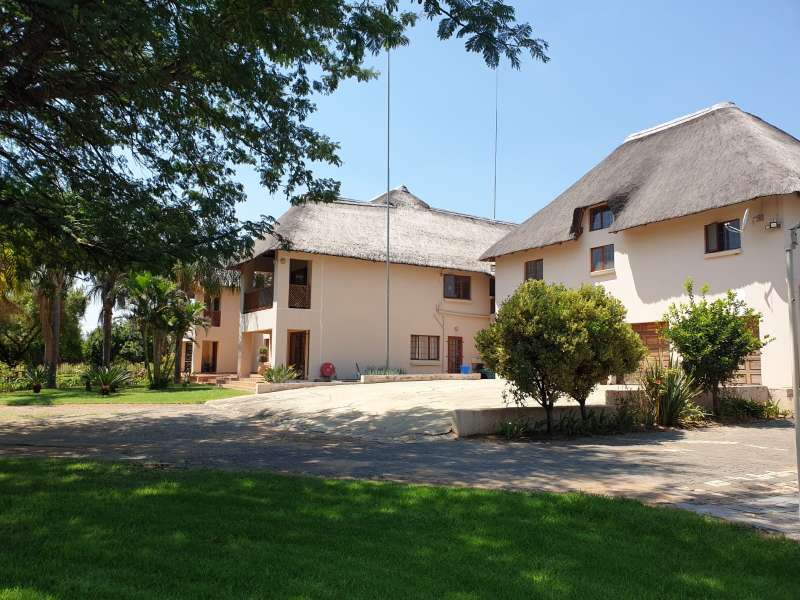Stunning 2.1 Hectare Plot in Buffelsfontein, Mooinooi Location: Peaceful area in Buffelsfontein, Mooinooi, just 3km from Mooinooi Mall. Overview: Perfect for a large family looking for tranquillity away from city noise, or for business enthusiasts seeking investment opportunities. Main House Features Design: Eye-catching double-storey house with thatched roofing. Bedrooms: 6 large bedrooms. Three on the ground floor with spacious ensuite bathrooms. Three on the first floor, including the main bedroom with a loft and ensuite bathroom, plus two bedrooms sharing a bathroom. Living Spaces: Full bar area with separate toilet and washing basin, double volume lounge area, dining room, double volume sitting room, and a well-furnished kitchen with two stoves. Utilities: Two laundries (one next to the kitchen and another in the garage with a scullery having two basins), and two walk-in grocery cupboards/storage in the kitchen. Additional Accommodations Flatlet: 2 bedrooms with built-in units, a bathroom with shower, kitchen, and living room. Garages: Four garages with three bedrooms above, each with full ensuite bathrooms. Extra Rooms: 8 additional bedrooms with full ensuite bathrooms, 7 of which are currently generating rental income. Venue and Outdoor Features Venue: Double-storey venue accommodating 70-80 guests, suitable for functions such as weddings, year-end events, and meetings. Includes dining area and separate toilets. Swimming Pool: Large pool next to the venue. Dam: 12m x 1.2m deep dam. Vegetable Tunnel: Equipped with an automatic sprinkler system. Fireplaces: Three fireplaces for braai, accommodating residents, tenants, and visitors. Utilities and Additional Land Water Supply: Proper working borehole delivering about 6000 litres of water. Three water tanks supply the main house, residence areas, and garden via a sprinkler system. Electricity: 3-phase electricity supply installed. Convenience and Accessibility Proximity: Mooinooi Mall (3km away), nearby schools, police station for security, and a clinic (4km away). Business Potential: Ideal for developing a restaurant, rentals, and day-visit accommodation venues.
