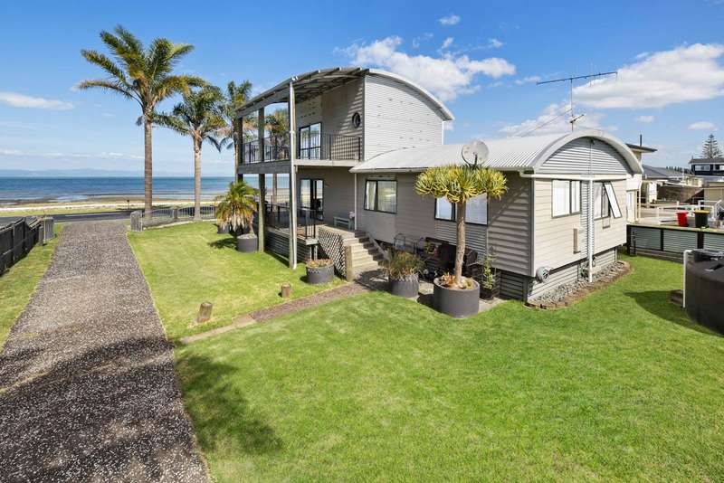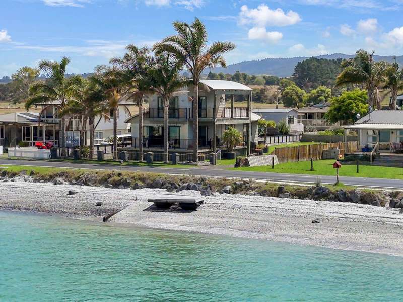 Summer is here and the spectacular sea and coastal views from this beautifully positioned home are absolutely stunning! This character home is a real feature in the district. With its curved roof, wrap around decks and mature tropical palms it has a real seaside feel about it. With three good sized bedrooms a family bathroom downstairs and the master upstairs this is a great family home or an exciting holiday retreat. The views from the master bedroom are spectacular! Very spacious this bedroom feels private and with its own ensuite and probably one of the best and most expansive views in the whole of Kaiaua from the massive decks. The home is in a prime location right opposite the beach and is just waiting for a lucky family to make special Summer time memories here. Enter the home from sheltered and covered decks to the spacious lounge which is quite spacious and open plan with the dining area. Leading on into the galley style kitchen there are plenty of cupboards, appliances and good natural light. There is a big breakfast style benchtop perfect for the cook of the house or family breakfast time. Open the ranch sliders and spread out doors is also a great option for bbq’s with family or friends. A double garage has plenty of room for two cars and has a concrete floor. The garden is fully fenced and quite minimalistic so plenty of scope to park campers or boats off road and to make your mark with some new plants or trees. There are plenty of lawns for kids to play or campers to stay! The house has a rain water tank and there is another small one collecting off the garage for watering the garden or washing the boat. This is a great holiday area but many have discovered the village offers permanent residents plenty of options as Kaiaua is a very family friendly place to live. Great fishing of course but for the non-fisher folk, there is an active local community in this seaside village, beach walks, tennis and sports clubs, garden ramblers and a library. There is a bus for Hauraki Plains College and Kaiaua Primary school is just down the road. This is a wonderful place to move your family to. Kaiaua has an active local boating club and plenty of fishing competitions. Locals put their flounder nets out or launch kayaks or boats. There is a bustling Sunday market in the summer, a garage with full mechanics workshop, two shops and a great pub with family restaurant. Don’t miss out this is a prime location and with such gorgeous views this part of the coast is just a great place to be. Call now to view!