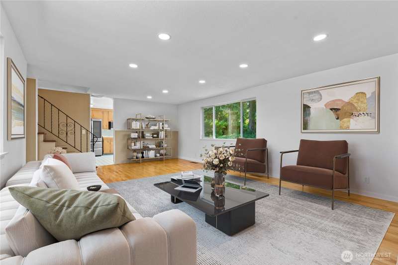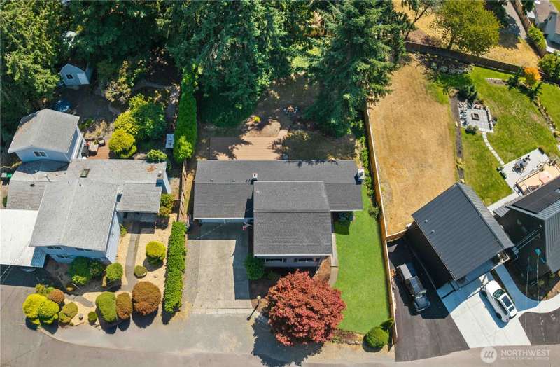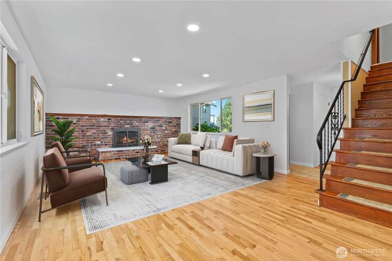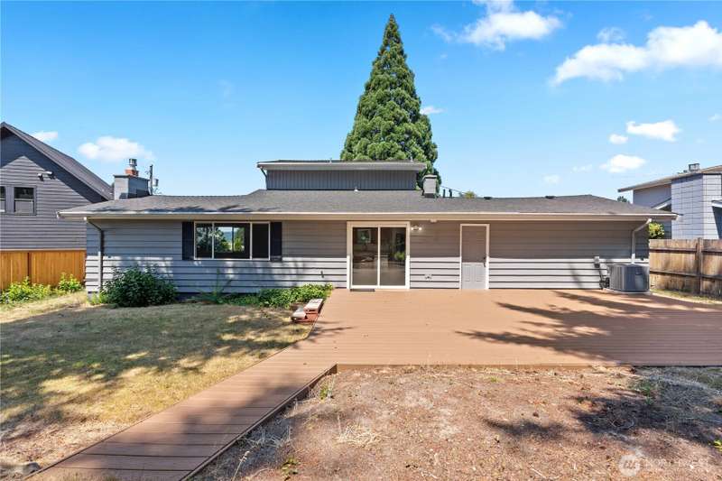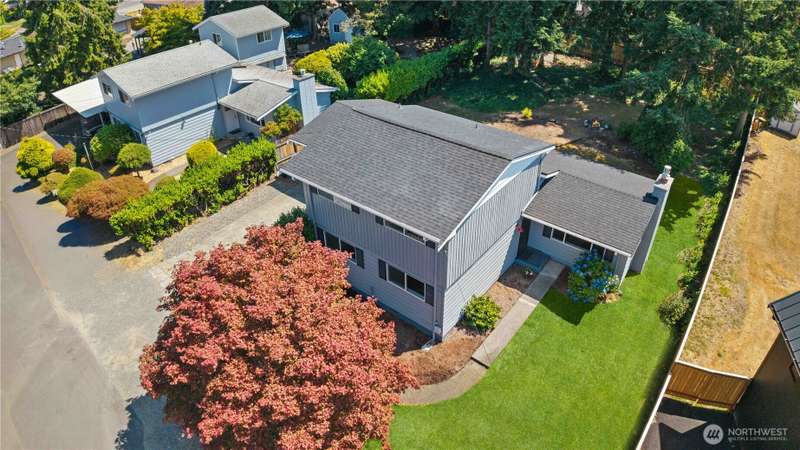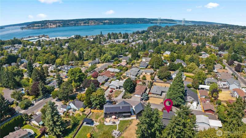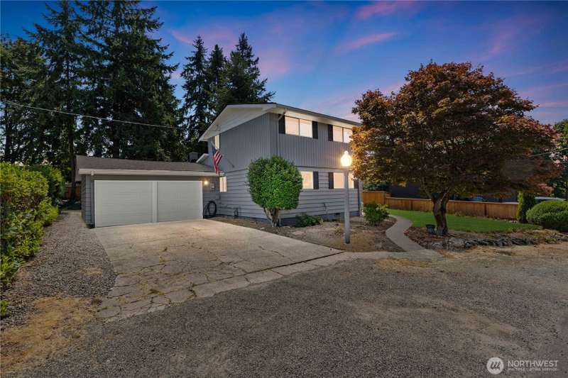 PRICE REDUCED over $35,000! At the end of a quiet PRIVATE lane, Well-maintained home blends comfort, character, & flexibility. Two bedrooms on the main level and two more upstairs, the layout is ideal for multi-generational living or home office needs. The cozy living room features a bold brick wall with a gas fireplace, while the spacious kitchen opens to a large patio deck overlooking a beautifully landscaped, park-like backyard. Stay comfortable year-round with a heat pump & A/C. Recent updates include newer appliances, roof, furnace, & water heater. A generous 2-car garage & extended driveway provide ample parking. Conveniently located near Hwy 16, Titlow Park, Chambers Bay, Day Island Marina, scenic trails, & University Place schools.