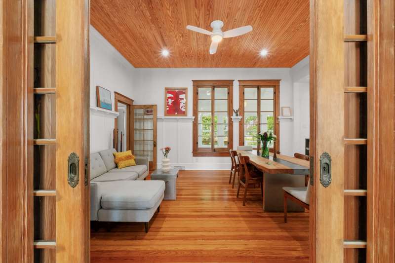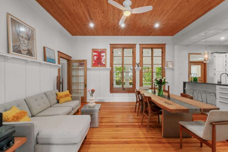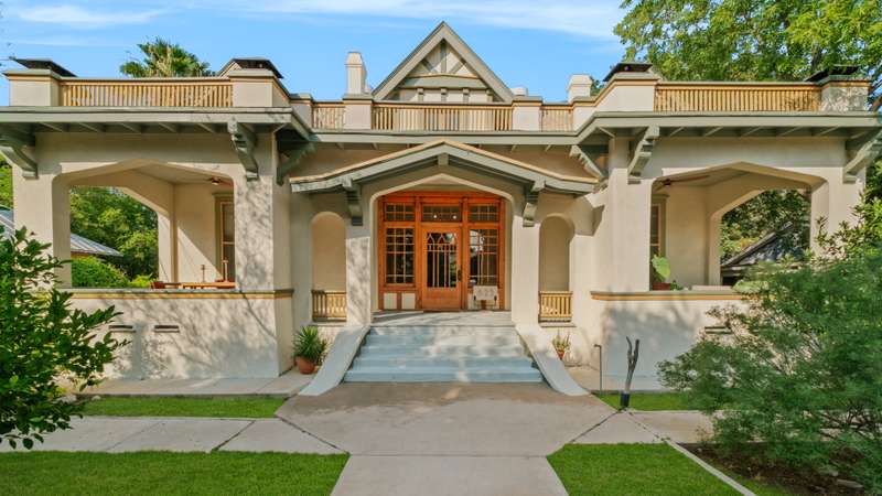 Architecturally significant and visually striking -even among the grand homes of the Historic King William District -this 1903 Arts and Crafts masterpiece offers a rare blend of historic pedigree and modern Scandinavian inspired luxury. Thoughtfully reimagined, the interior preserves original wood floors, millwork, soaring ceilings, and graceful archways, now paired with tastefully updated kitchen and baths that elevate everyday living. Nestled on an expansive double lot, this property boasts dual driveways, providing ample space for your car collection, golf cart, or a delightful play area. Experience the perfect blend of privacy, comfort, and modern convenience in this remarkable primary suite that encompasses the entire second floor. This luxurious retreat features a dedicated gym room, an inviting office nook, and a stunning rooftop balcony, providing an oasis for relaxation and productivity. The suite also boasts a spacious dressing room and a spa-like bathroom, complete with a serene soaking tub and an elegant stand-up shower, ensuring a tranquil escape within your own home. What truly sets this property apart is its coveted Mission Reach riverfront location. The private, lush backyard opens directly to the San Antonio River, creating an extraordinary urban sanctuary. A custom Keith Zars pool completes this rare offering -where timeless architecture, modern comfort, and nature converge in one of San Antonio's most iconic settings. - 10/19/2025 3:15:34 AM