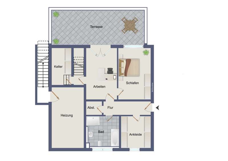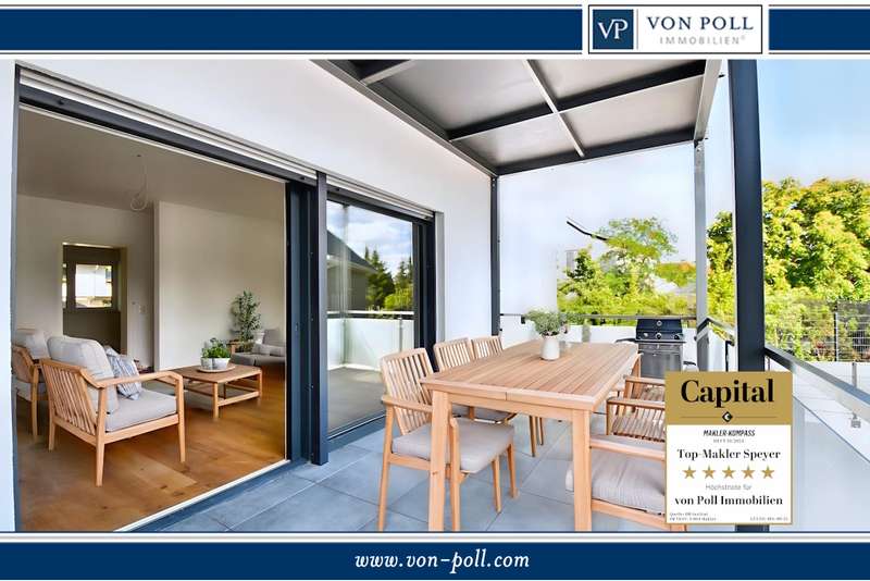 This beautiful maisonette in Limburgerhof could soon be your new home. The approx. 154m² of living space distributed from the garden level to the mezzanine floor leaves nothing to be desired. As you enter the apartment on the mezzanine floor, you are immediately greeted by the spacious, open-plan living room, where you can enjoy your everyday family life. The adjoining balcony is the perfect place to unwind after a busy day. The spacious kitchen can be set up to suit the needs of amateur chefs and there is a separate dining room. A further room, a guest WC and a storage room complete the floor plan on this level. There are three rooms in the basement, which you can use as bedrooms, children's rooms or studies. From one of the rooms you have access to the large terrace, where you can spend cozy hours with your loved ones. The daylight bathroom is equipped with a floor-level shower and a bathtub. A storage room and a cellar room complete the offer. Oak parquet flooring has been laid in all living areas to create a stylish atmosphere. Underfloor heating, the pioneering air-heat pump and an existing photovoltaic system ensure an excellent energy balance. You can park your vehicles in the garage, which has its own access to the apartment. An elevator is available in the building.