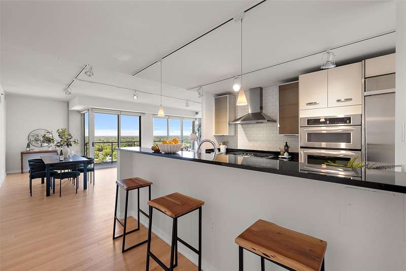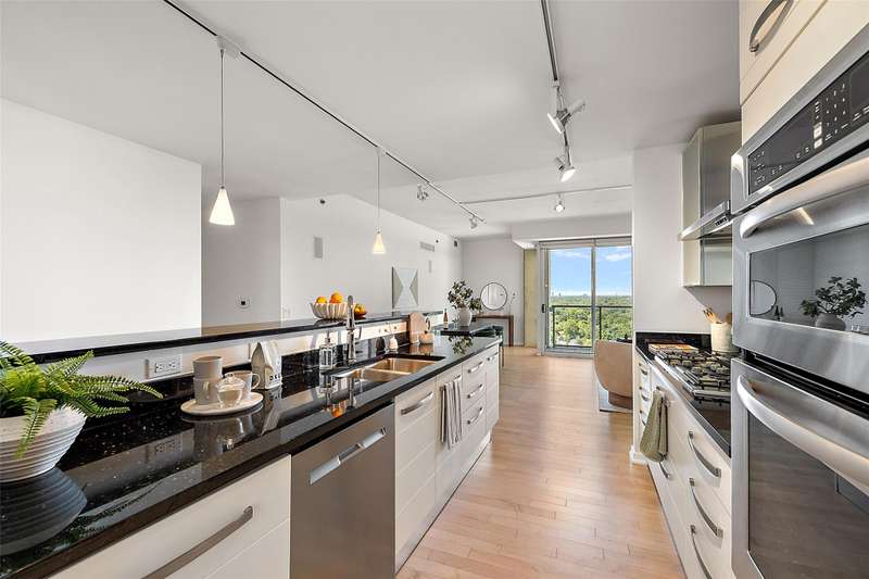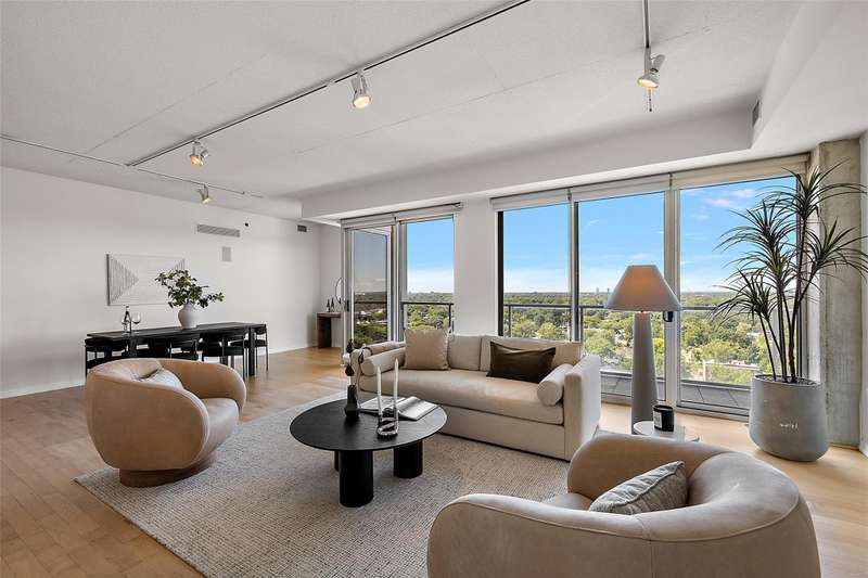 Stunning sunsets paint the sky most evenings from this 17th-floor penthouse at The Fifth, where expansive west-facing balconies offer an unmatched vantage point 170 feet above the city. In autumn, the same views transform with brilliant fall colors, creating a backdrop that changes with the seasons. Constructed of concrete and structural steel, the building is known for its permanence and quality, and this home reflects the best of high-rise living. The three-bedroom layout is both flexible and elegant. The primary suite is a retreat in itself, featuring a newly renovated spa-inspired bath and an expansive walk-in closet. A second bedroom is served by a nearby full bath, while a third bedroom or office provides versatility with sweeping city views. A thoughtfully designed half bath adds convenience. Walls of floor-to-ceiling glass fill the interior with natural light, creating a seamless connection to the skyline. The kitchen is appointed with modern European-style cabinetry and stainless steel appliances, complementing the home’s clean, contemporary lines. Fresh paint and new carpet enhance the sense of move-in readiness throughout. The generously proportioned balconies are among the largest in the building, extending your living space into the open air and maximizing the west-facing views. The Fifth offers notable amenities, including a doorman, a heated parking garage for comfort in every season, and the convenience and value of water and gas being included in the HOA payment. Refined finishes, generous proportions, and open sightlines define the interior, while the location offers unrivaled access to Royal Oak’s restaurants, shopping, and cultural destinations. This residence is a statement of sophistication and distinction, combining privacy, modern comfort, and an irreplaceable perspective over the city.
