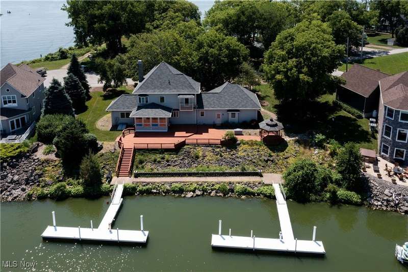 Are you looking for a private place to escape the hustle and bustle? The house at 4591 South Memorial Shoreway Drive on Johnson's Island is located at the end of the road on a double lot. The house faces east, thus offering views of the sunrise over Sandusky Bay. You can watch the sunset over the quarry from the house, back deck, gazebo, or one of two, 40' docks. Everywhere you look, you see water! Inside, the home features 4 bedrooms, including a primary bedroom with a jacuzzi tub that overlooks the quarry, a large kitchen, a spacious living room with a wood-burning fireplace, and a huge 2.5-car garage for all of your toys. Whether you are looking for a full-time residence or a summer getaway, this house might be what you are seeking.