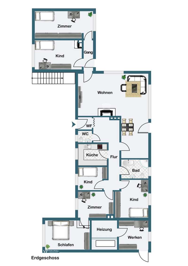 This solidly built bungalow from 1974 offers enormous development potential for individualists, craftsmen or creative minds with a sense of space and design on a living space of approx. 145 m². The house impresses with its well thought-out room layout: six rooms, a bathroom, a guest WC and additional usable space of approx. 31 m² offer plenty of room for families, living and working under one roof. The bungalow is situated in a quiet location on the outskirts of the village and offers unobstructed views over extensive meadows and fields. Thanks to its location on a slight hill, you can enjoy a wonderful view and pleasant privacy. The property is in need of renovation and therefore offers the ideal basis for realizing individual living ideas and modern concepts.
