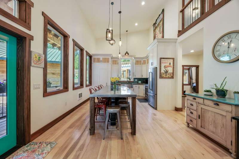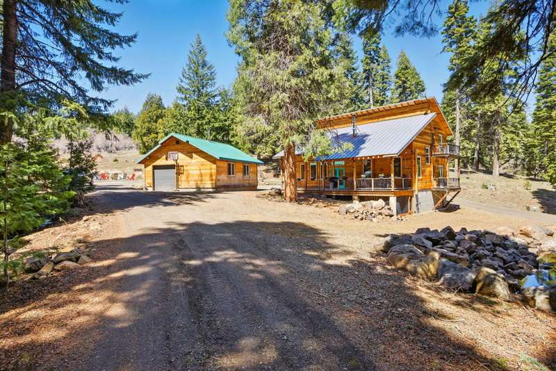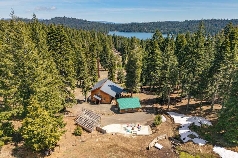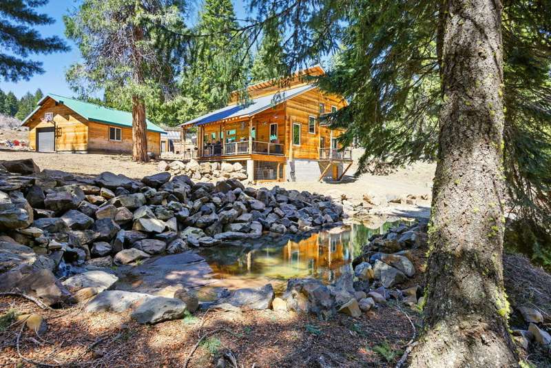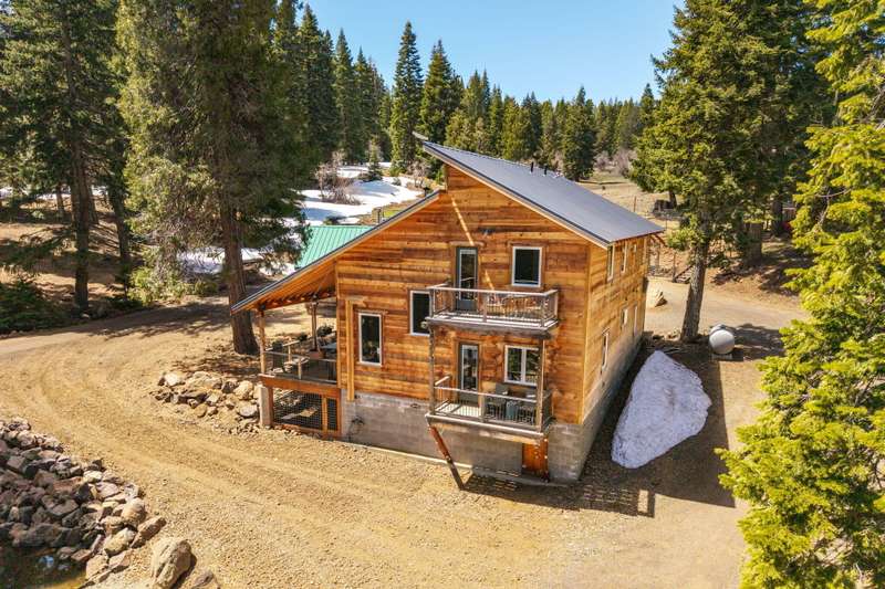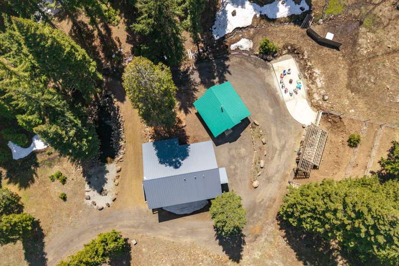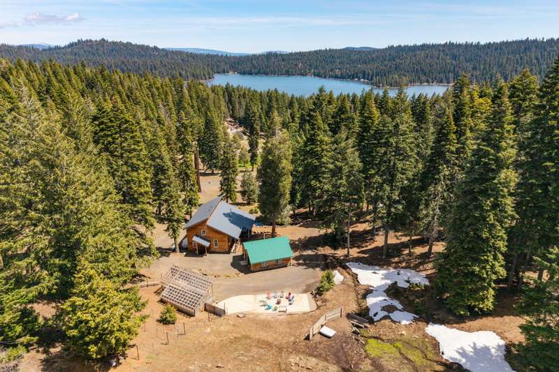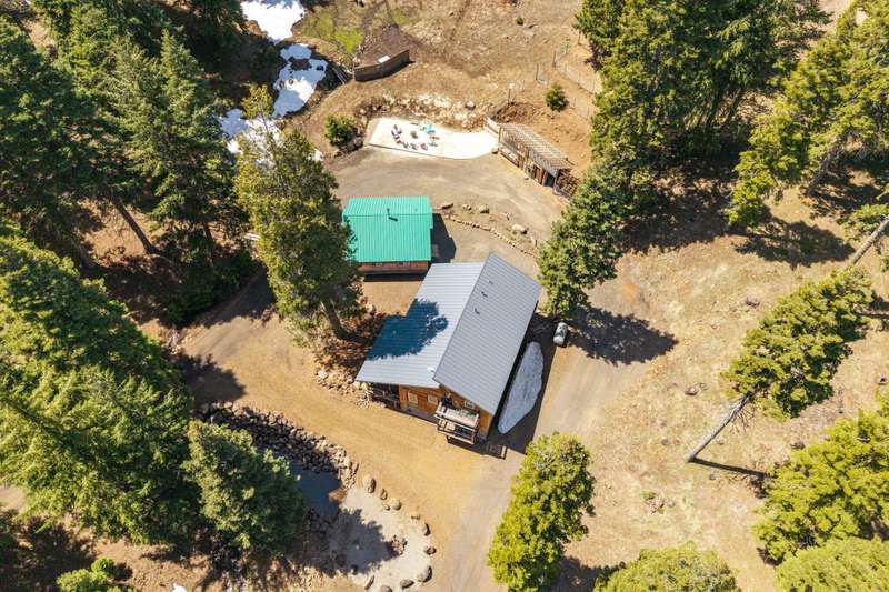 Wanting to get away from it all? Well, this is it, across the hwy from Hyatt Lake and minutes to Howard Prairie. 2019 built, and 1990 sq ft. 3 bedrooms and an office or 4 and 3 bath, 2 story. Kitchen has cement countertops, kitchen Aid stainless appliances, hardwood floors and 17-18 ft ceiling. Primary is on the main level with a walk in closet and balcony, bathroom has double sink vanity, standalone soaking tub and separate shower. 2 full bathrooms on the main level. 2-3 bedrooms upstairs, 2 of them have walkin closets, the bathroom has double sink vanity and tub/shower combo. Upstairs also has a balcony with small view of lake. All this on a little over 5 acres with a detach shop/ garage, and bathroom in it. Along with green house/well house/ storage. Seasonal creek and pond, along with a back porch and wood bucket crane to hoist your wood up for the certified wood stove. This property backs up to BLM, also a 8000 Gallon holding tank for fire suppression. Chicken coop/ dog runs.