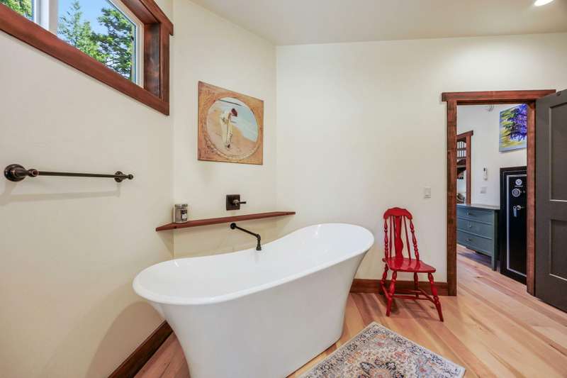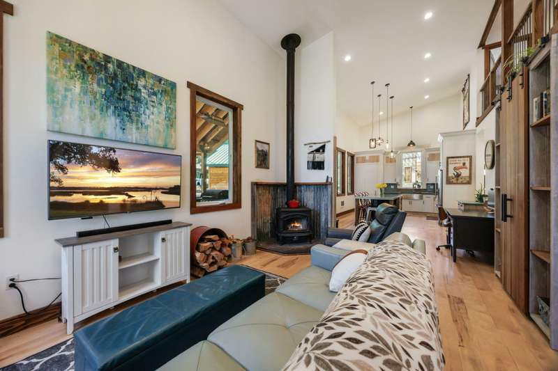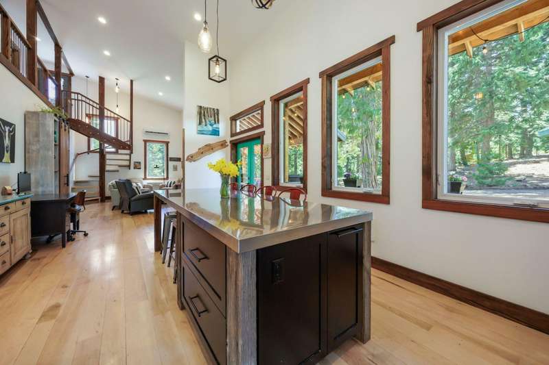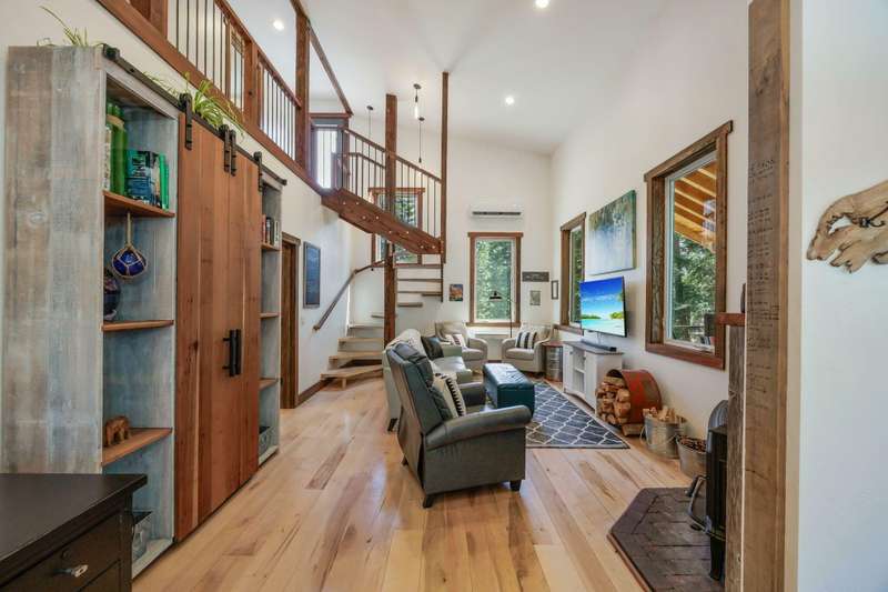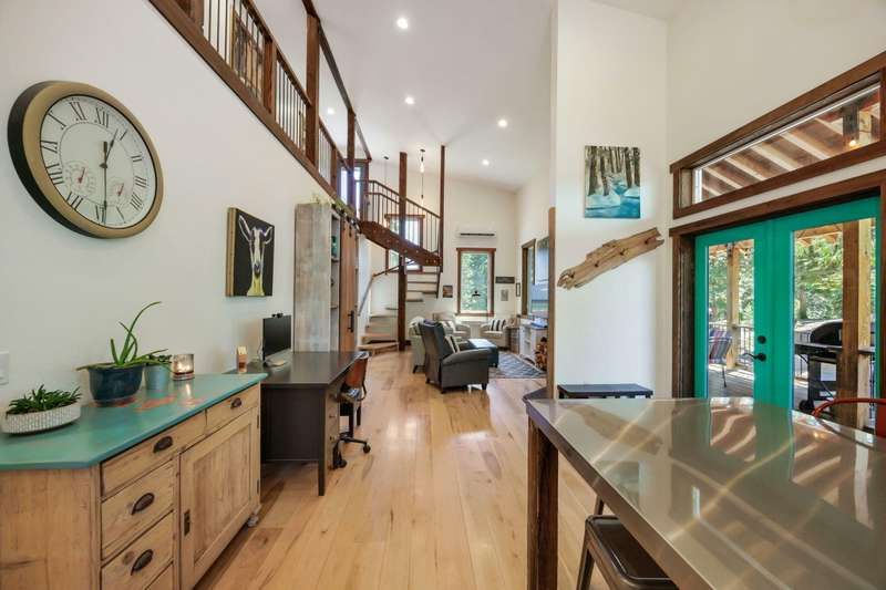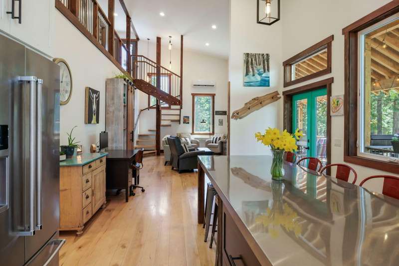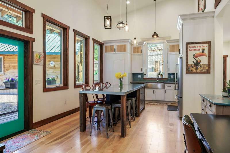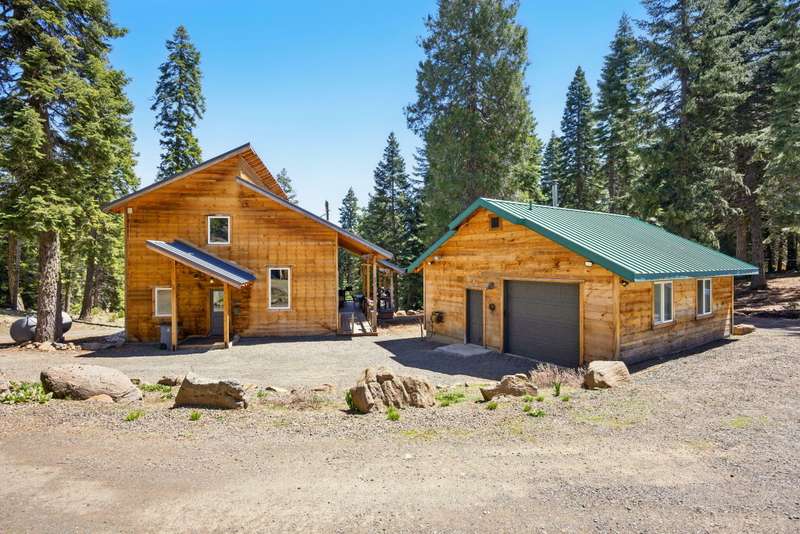 Wanting to get away from it all? Well, this is it, across the hwy from Hyatt Lake and minutes to Howard Prairie. 2019 built, and 1990 sq ft. 3 bedrooms and an office or 4 and 3 bath, 2 story. Kitchen has cement countertops, kitchen Aid stainless appliances, hardwood floors and 17-18 ft ceiling. Primary is on the main level with a walk in closet and balcony, bathroom has double sink vanity, standalone soaking tub and separate shower. 2 full bathrooms on the main level. 2-3 bedrooms upstairs, 2 of them have walkin closets, the bathroom has double sink vanity and tub/shower combo. Upstairs also has a balcony with small view of lake. All this on a little over 5 acres with a detach shop/ garage, and bathroom in it. Along with green house/well house/ storage. Seasonal creek and pond, along with a back porch and wood bucket crane to hoist your wood up for the certified wood stove. This property backs up to BLM, also a 8000 Gallon holding tank for fire suppression. Chicken coop/ dog runs.