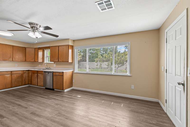 Wonderful entry-level home in quiet Central Point neighborhood! Enter into a sizeable living room w/ cozy fireplace for relaxing evenings. Spacious kitchen includes all appliances, perfect for family meals. Main bath features tile floors & tub surround for easy maintenance. Out back, enjoy a very large, fenced yard w/ ample space for a pool, kids' play, & pets to roam. Room for RV parking adds convenience. 2-car garage has two built-in rooms that can be easily removed for full use. Ideal starter home—move-in ready & full of potential!