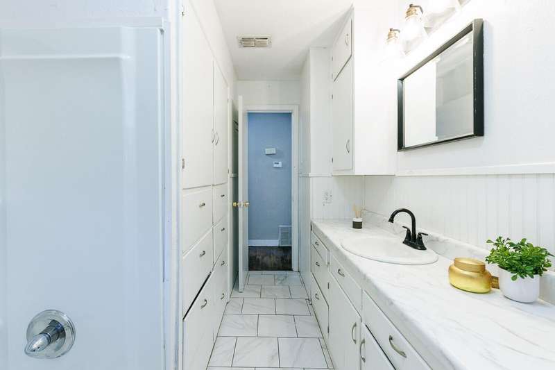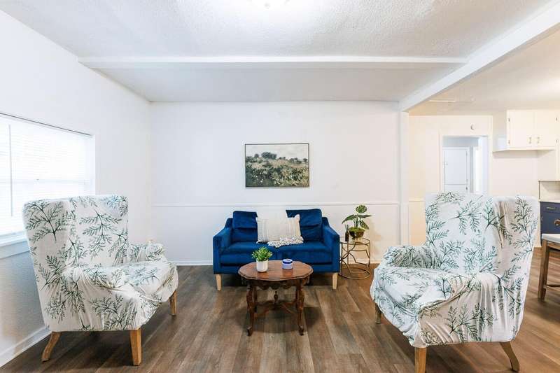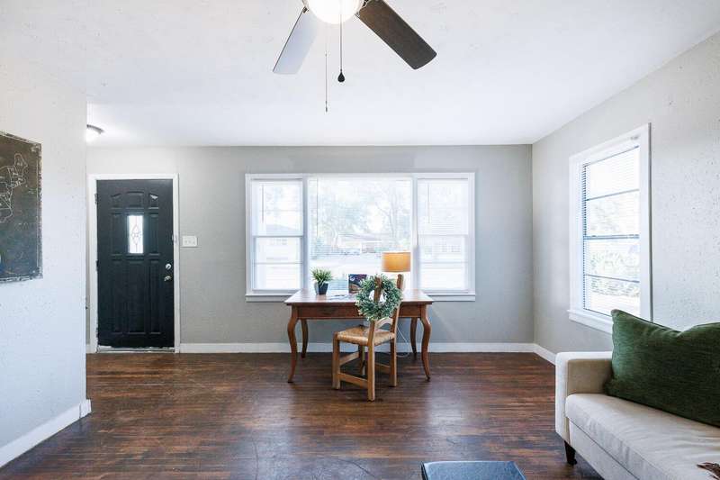 This 3/1.5/1 house with two living spaces and nearly 1500 sq ft is waiting to be a home. Original hardwood floors throughout front living room and in each bedroom keep the original charm of the home while the updated kitchen and bathrooms add the perfect touch. There is tile in both bathrooms and fresh paint throughout. The closets are so much larger than closets for this age of home. Enjoy the New Vinyl Plank and sub flooring in Kitchen and Flex space. The kitchen cabinets are beautiful~you will love the color. Roof 3 years old. There is a large backyard with room for your dog.