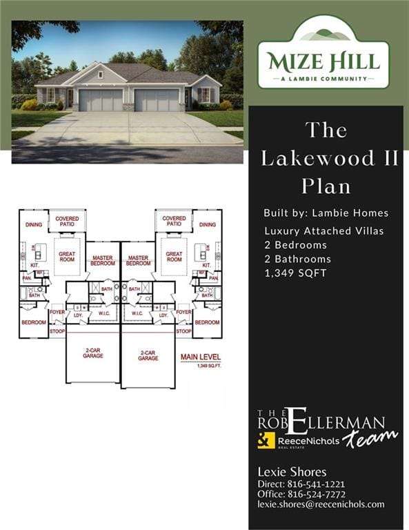 Currently a VACANT lot - Please tour model home at 25029 W. 94th Terrace for reference. The NEW Lakewood II by Lambie Homes offers 2-bedroom, 2-bathroom Villa + 8x8 flex room/pocket office. The grand 9' foot ceilings through the main level, this family room features a floor to ceiling stone with 40 Allusion electric fireplace and an inviting dining area that opens onto a covered patio. Enjoy the vibrancy of Mize Hills planned amenities, including walking trails, a pool, and nearby Cedar Station Park and Mize Lake. High end standard finishes include: Quartz countertops, 50 gallon water heater, black door lever hardware and hinges, and covered patio. This home is a new build and at base pricing. Estimated completion will be May 2026 *Model home open Wednesday-Sunday, 12:00pm5:00pm. 25029 W. 94th Terrace* Reach out to community agent for more details!