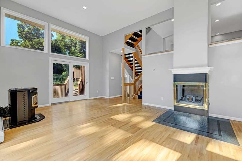 Tucked in the lush charm of Piermont?where art, architecture, and Hudson River history meet?this light-filled, four bed, four bath multi-level contemporary offers a unique blend of serenity and style. Only -30 minutes from Manhattan and located in the top-rated South Orangetown school district.Set over a half acre, your new home provides an extraordinary escape without sacrificing convenience, with direct access to the 10+ mile recreational Esposito Trail (Erie Path)?a gateway to natural beauty, luxurious privacy, rich history, and the allure of the village of Piermont.Built in 1992 with a modern eye for light and space, the home unfolds with intention. The entry-level welcomes you with a spacious foyer, direct garage access, powder room, and a generous kitchen. A marble pass-through connects the kitchen to the dining area, while sliding Andersen doors lead to two private decks?one plumbed for grilling, the other made for lounging under the trees or entertaining al fresco.One level down, a cozy sunken living room with a wood-burning fireplace and a pellet stove offer warmth and comfort, surrounded by oversized windows with seasonal river views.Below that, the basement level features three generously sized rooms, including one with vaulted ceilings and a loft?ideal for a creative workspace or playful hideaway. This floor also includes a full bath, laundry, ample storage, and even a kiln room tucked beneath the deck?perfect for hobbies, gardening, or bike storage.Upstairs, the primary suite feels like a private wing, complete with soaring ceilings, dual walk-in closets, and a spa-inspired bath with soaking tub, separate shower, and abundant natural light. An adjacent family room with its own en-suite and mini-fridge doubles as a fifth bedroom, guest quarters, or home office.Throughout, the central staircase?lit by skylights?anchors the home with a soft, shifting glow. Central air, baseboard heat, Andersen windows, and thoughtful upgrades like reverse osmosis water filtration add comfort and quality.Outside your door, Piermont invites exploration. Dine at favorites like Roost, Otto's, and Trata, stroll the village shops and galleries, or hike and bike along riverfront trails. Weekends offer easy access to Piermont's weekly Farmer's Market on Sunday, Nyack Beach Park and lively street fairs that remind you the best of culture and nature coexist here. This isn't just a home?it's a lifestyle. A quiet perch with room to create, recharge, and connect, close to the city but a world away. This is Hudson Living. Virtually staged/edited.