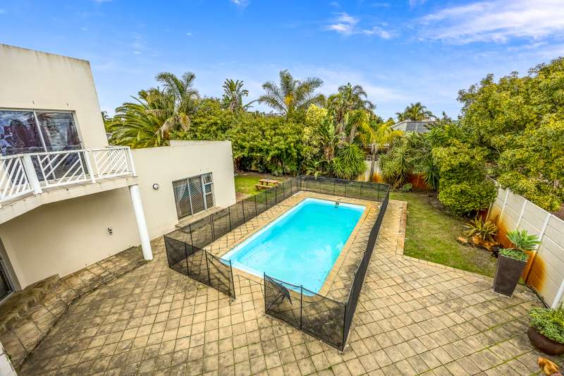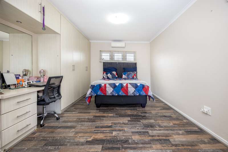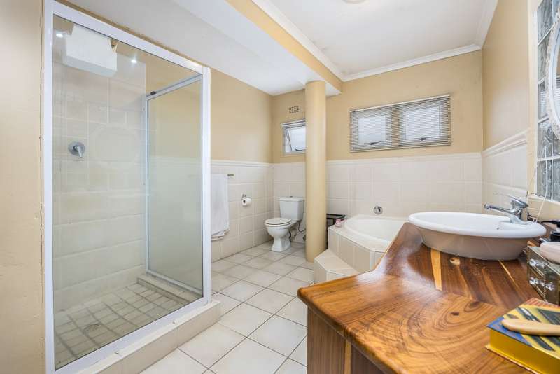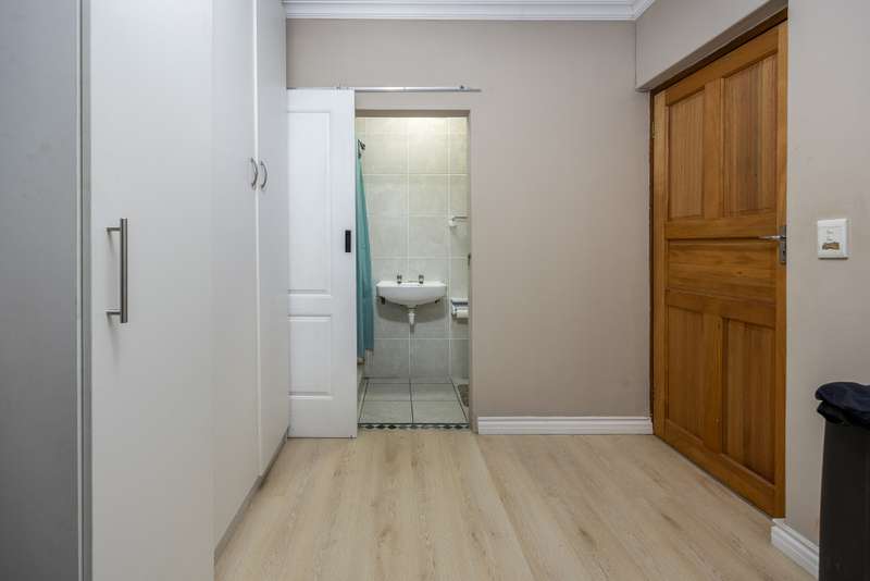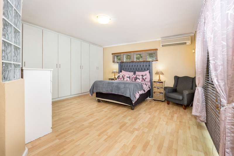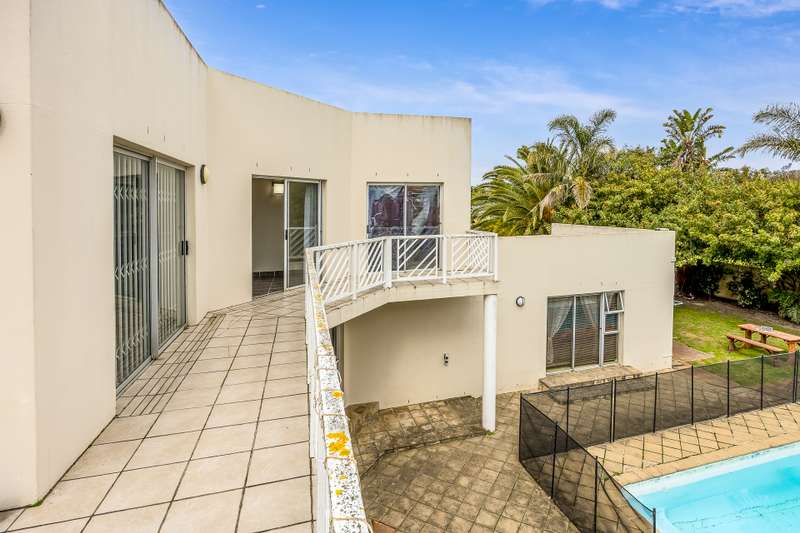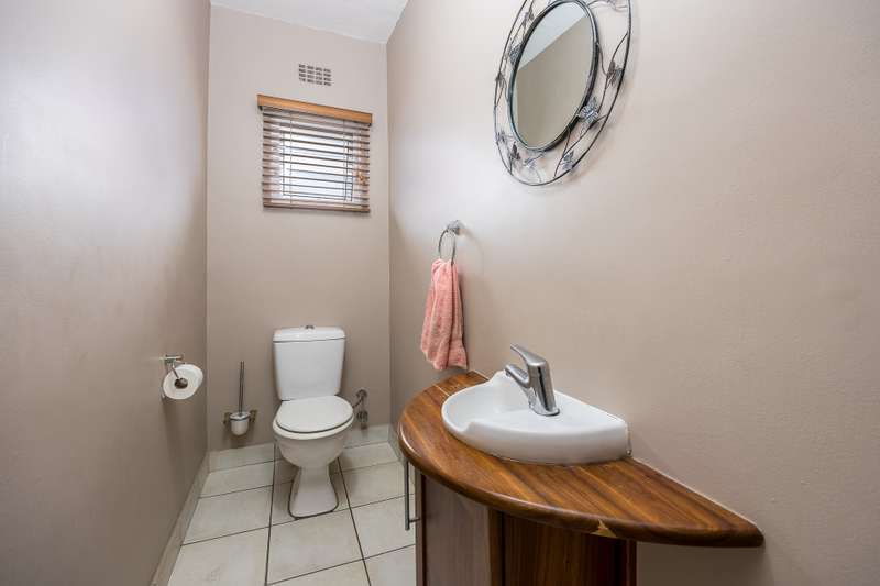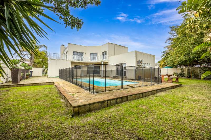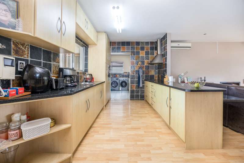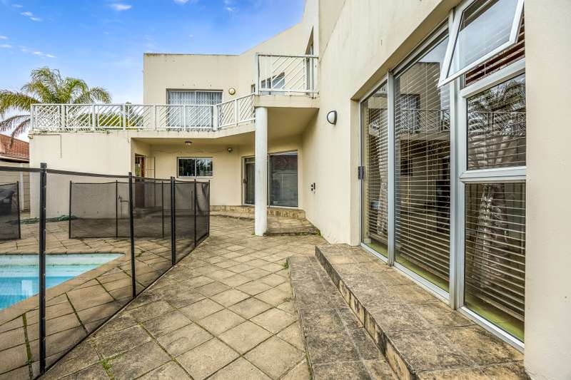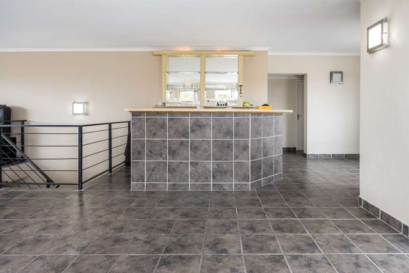 This lovely 405m2 of property is ideal for a large family. On entering through the mega front door, a welcoming lounge with fireplace greets you. This flows into a dining area and well fitted kitchen with separate scullery and laundry. The downstairs living areas open up onto the pool and garden. The garden is automatically irrigated from the borehole that pumps water into a storage tank. The master bedroom with en-suite is downstairs and also opens onto the pool and garden. A second bedroom with en-suite as well as a guest toilet is downstairs. The beautiful wood and steel staircase takes you upstairs to a large braai room with bar. This also opens up to a wrap around balcony. Furthermore, this area has 2 well-sized bedrooms sharing a bathroom. A 5th bedroom that can either be used as a office , movie room or home gym rounds off the upstairs space. Viewings by appointment only.
