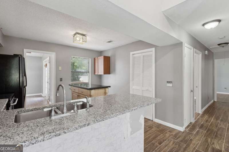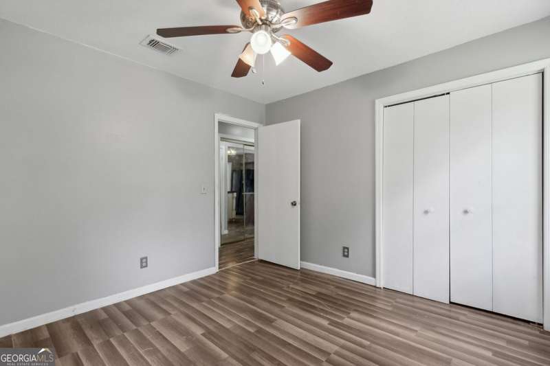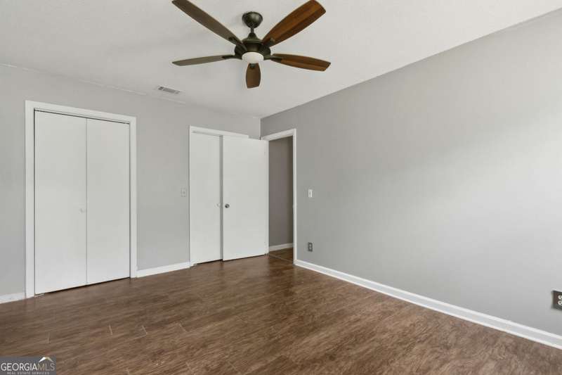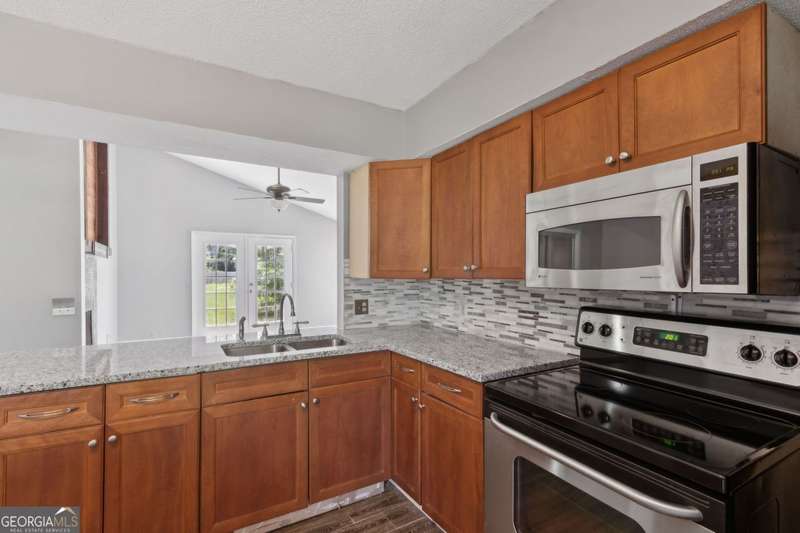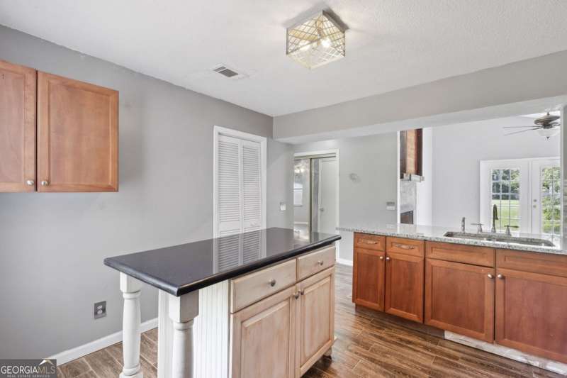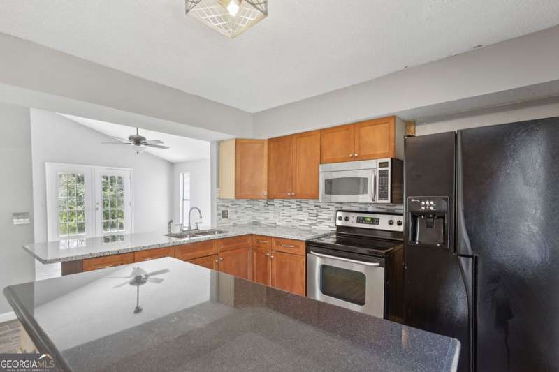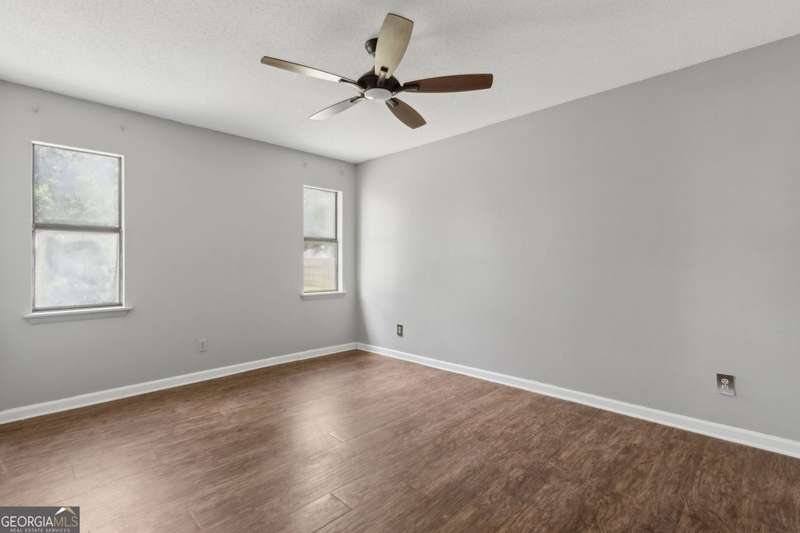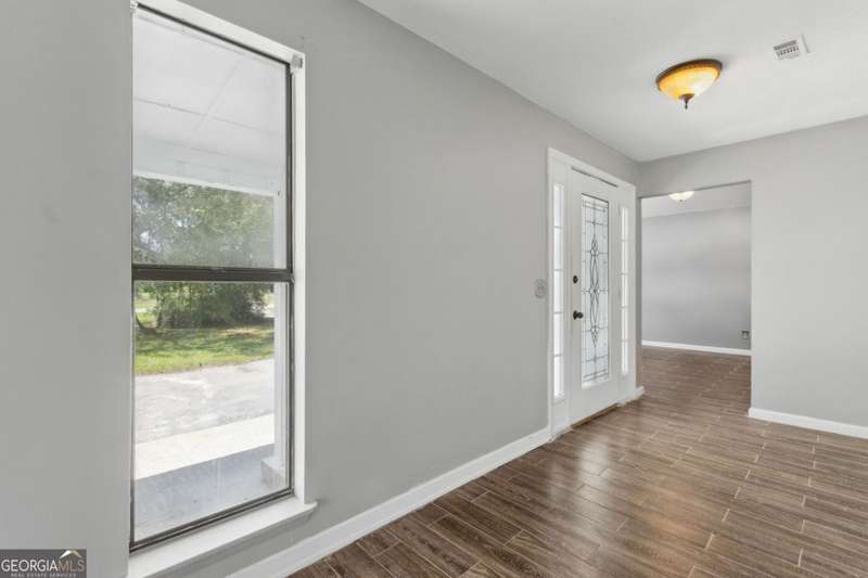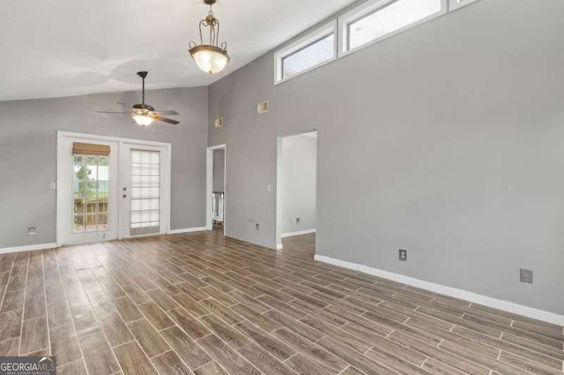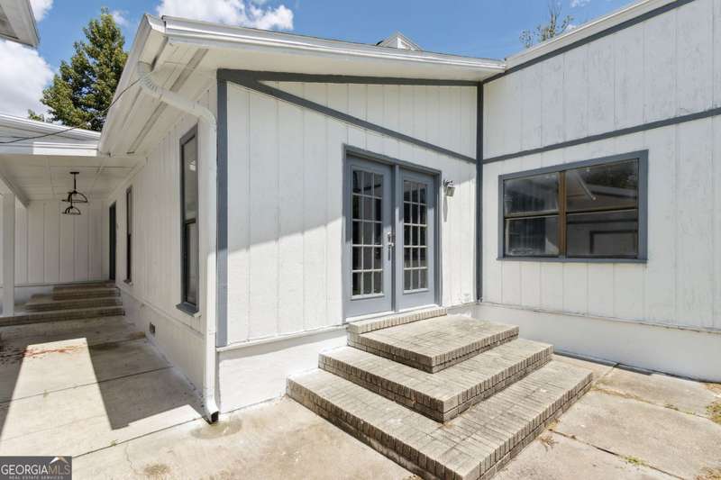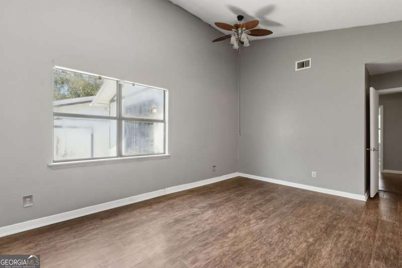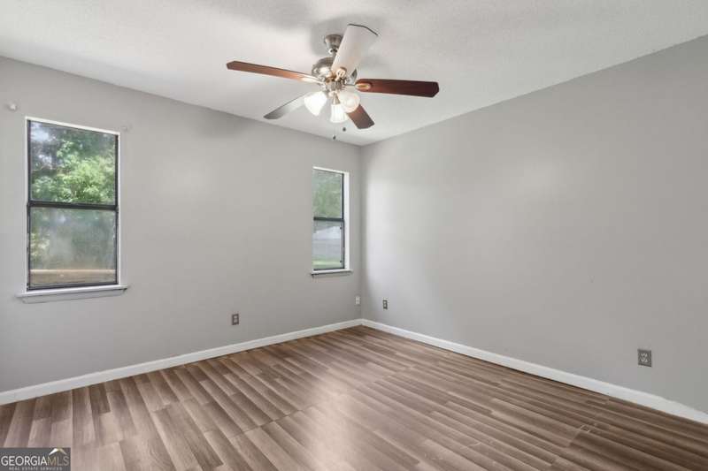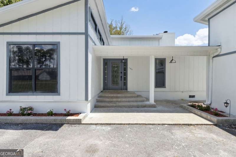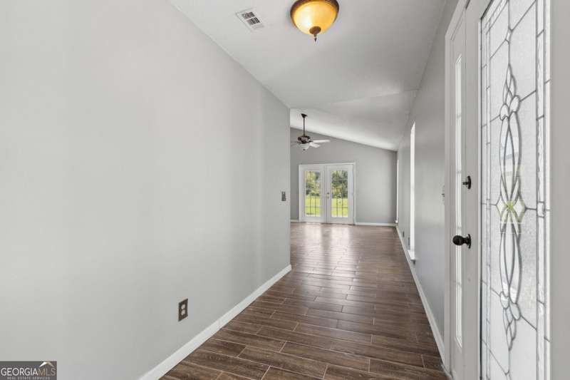 This one-of-a-kind lean-to style home showcases unique architectural character and a smart, functional interior layout. A spacious front porch welcomes you, along with a detached two-car garage offering plenty of storage and parking. Step inside to a semi-open floor plan featuring two flexible living areas that can be used as a living room, family room, dining area, media space - or whatever suits your lifestyle. High-set windows bring in beautiful natural light while maintaining your privacy. The home features wood-look tile flooring in the living areas and kitchen, with laminate in the bedrooms. The primary suite includes a private en suite with a tiled shower. Enjoy cozy evenings by the wood-burning fireplace in the living room. The kitchen is well-appointed with stainless steel/black appliances and solid surface countertops. Located just minutes from the public boat ramp and outside city limits - enjoy the benefits of no city taxes while staying close to everything you need.