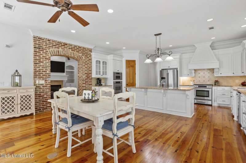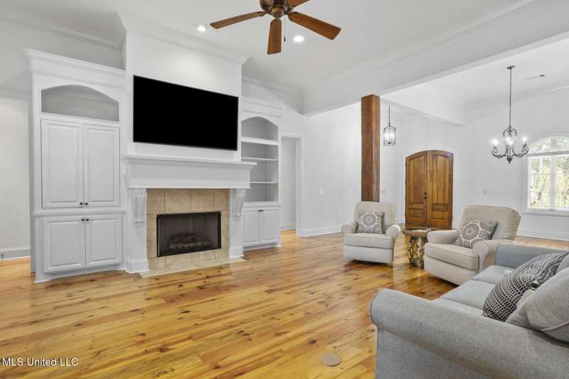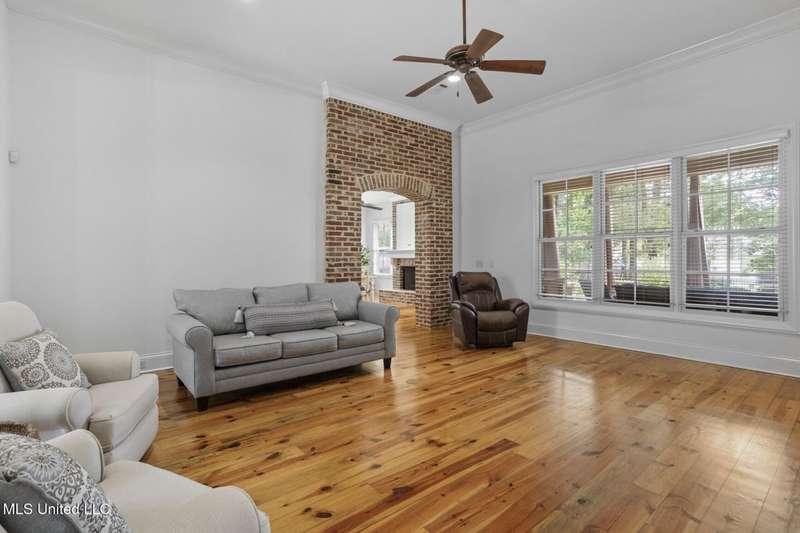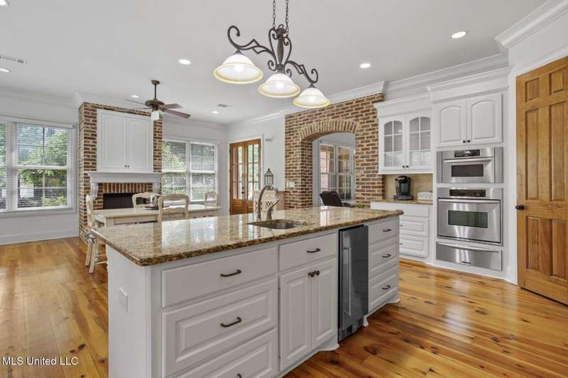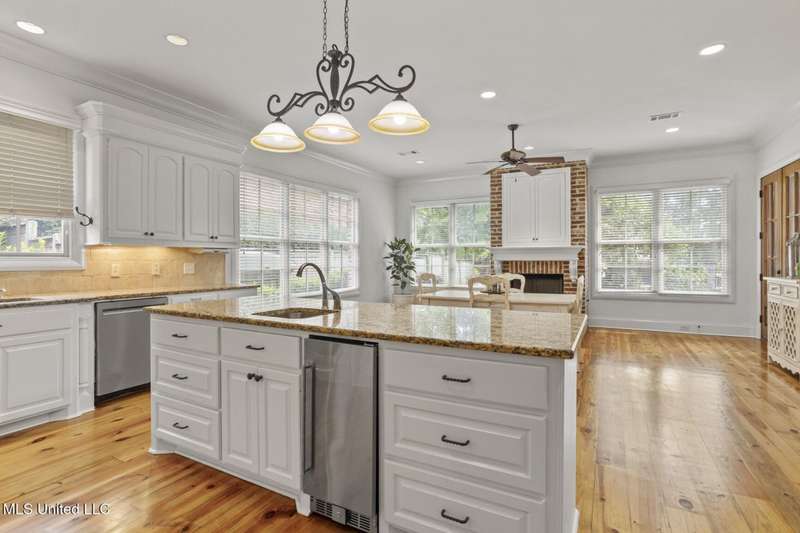 111 Camden Ridge ,Madison, Mississippi?a beautifully maintained and thoughtfully updated home in the sought-after Lake Caroline community, within the award-winning Germantown School District. This one truly checks all the boxes: spacious, functional, stylish, and move-in ready.With approximately 3,328 square feet, this home offers four bedrooms and three full baths?all on one level?with a large bonus room upstairs that could serve as a fifth bedroom, media space, or home office. The layout is ideal for both everyday living and entertaining, with a true split plan for maximum privacy.Step through the inviting covered front porch into a bright and airy foyer that flows seamlessly into the formal dining and formal living rooms, stylishly divided by a handsome exposed beam. The formal living room is anchored by a modern gas log fireplace, flanked by built-in shelving, and features a stunning wall of windows that floods the space with natural light and showcases the backyard views.The living spaces feature approximately 12-foot ceilings, refinished hardwood floors, and freshly painted walls in soft designer neutrals. The chef's kitchen is both stylish and functional with a huge granite-topped island with bar seating, stainless steel appliances (including a refrigerator, beverage fridge, gas range, wall oven, microwave, and warming drawer), and an abundance of cabinetry and counter space. Glass-front cabinets add a custom touch, while a walk-in pantry provides even more storage. The kitchen opens to a cozy keeping room with a raised brick hearth gas fireplace and a sunny breakfast area.Tucked off the kitchen is a dry bar area that leads toward the guest bedroom and third full bath, along with the well-equipped laundry room featuring built-ins and a utility sink. A separate friend's entry provides easy access from the driveway area. The garage also includes two additional storage areas.The primary suite is a private retreat with its own access to the back porch, generous wall space for furniture, hardwood floors, and an abundance of closet storage?including a dedicated hallway closet plus two separate walk-in closets inside the en suite bath. The primary bath offers dual vanities with travertine tops, two water closets, and a fully tiled shower, all designed for comfort and privacy.On the opposite side of the home are two additional bedrooms, each with spacious closets and a shared bath featuring double vanities and a separate toilet/tub area?perfect for ease of use. A coat closet in this wing of the home adds to the thoughtful design. NEW Carpet in all secondary bedrooms!Upstairs, you'll find a bonus room with new carpet,two closets,, including a large walk-in storage closet?ideal for a playroom, guest suite, or fifth bedroom if needed.Outdoors, the home shines just as brightly. Enjoy a deep covered back porch and an extended patio out back, all overlooking a fully fenced backyard with a mix of wood and iron fencing, fresh landscaping, a
