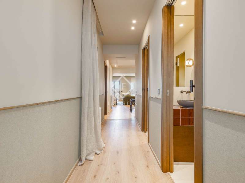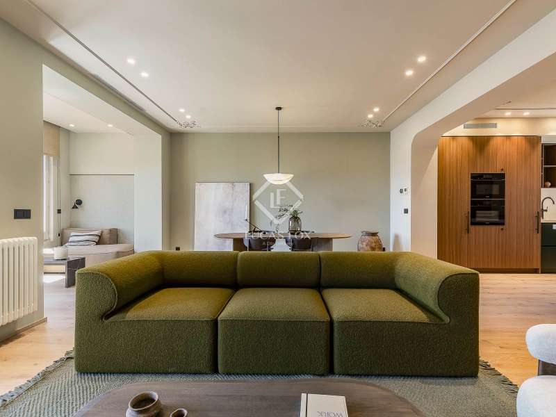 Located on the prestigious Calle Còrsega, in the heart of Eixample, this exquisitely renovated apartment offers nearly 180 square metres of meticulously crafted living space. Every element of the home has been thoughtfully designed and finished to the highest standards, delivering an unmatched sense of comfort, flow, and sophistication. At the heart of the home, the open-concept living and dining area spans over 27 square metres, providing a warm and inviting space for entertaining or simply relaxing. Sunlight pours in through large windows and a charming interior patio, adding natural light and a touch of greenery to the day-to-day atmosphere. Adjoining this space, the sleek galley kitchen has been designed for both functionality and style, with over 8 square metres of clean lines, ample storage, and refined finishes, making it the perfect spot for everything from casual breakfasts to dinner parties. Flowing naturally from the living areas, the main suite offers over 30 square meters of serene comfort, complete with a generous walk-in wardrobe and a luxuriously finished en-suite bathroom featuring a bathtub and contemporary fixtures. From here, step directly onto your private 8.5-square-metre terrace, an ideal place to enjoy peaceful mornings or unwind in the evening. Two additional bedrooms, one nearly 17 square metres, the other close to 19, provide flexible options for family, guests, or creative use and are conveniently located near a stylish complete bathroom. Working from home is effortless with a dedicated home office spanning almost 9 square metres, offering a quiet and inspiring environment. A well-appointed guest bathroom near the main living area ensures privacy and convenience for visitors. The layout has been thoughtfully divided into day and night zones, connected by a central hallway that enhances privacy in the sleeping quarters while keeping shared spaces open and connected. This home strikes a perfect balance between contemporary interiors and tranquil outdoor spaces. The combination of the peaceful interior patio and the sun-kissed private terrace brings in natural light, airflow, and a sense of calm that flows throughout the home. Set in the iconic and elegant neighborhood of Eixample, this prime location places you close to the best that Barcelona has to offer, renowned restaurants, boutique shopping, world-class architecture, and excellent transport links, all within easy reach. Ideal for families, professionals, or anyone seeking beauty, space, and function in one of the city’s most prestigious addresses. Contact us today to arrange a viewing.
