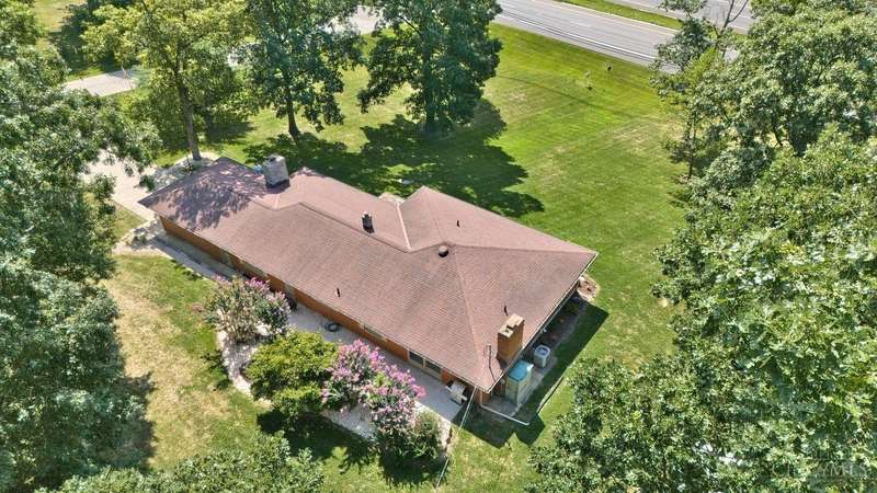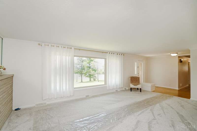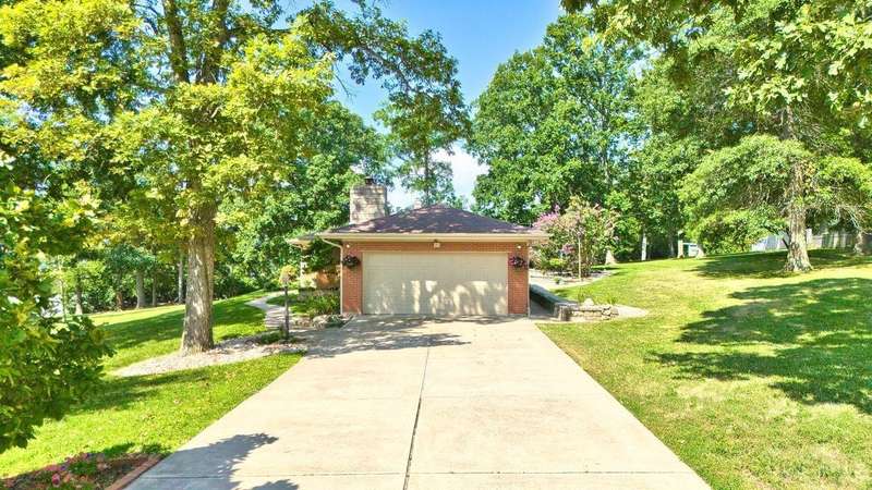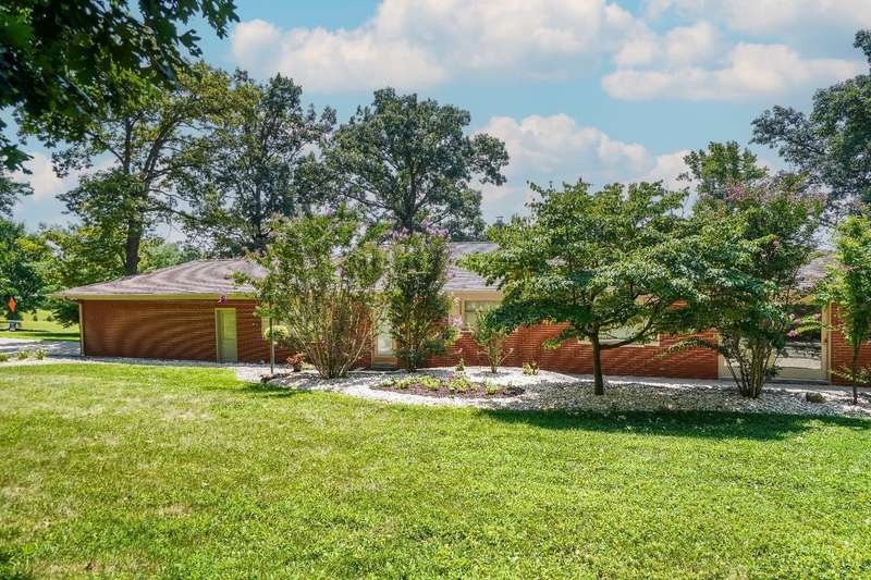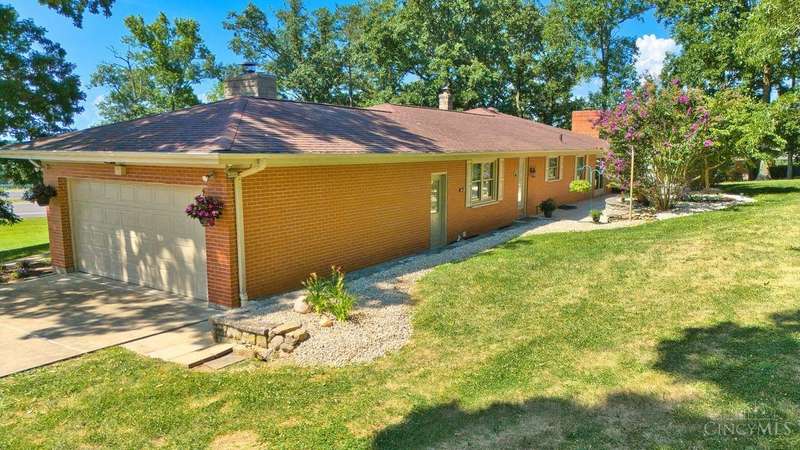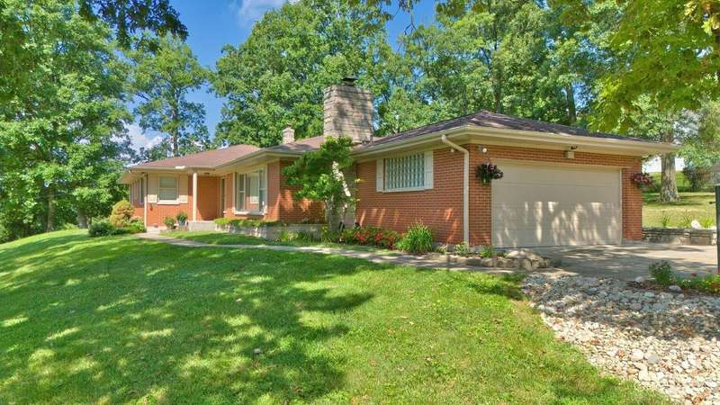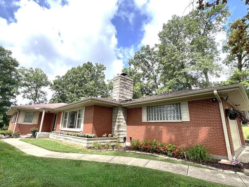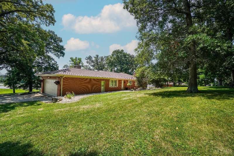 Discover peace and privacy in this beautifully maintained ranch nestled on over an acre of land filled with mature trees. Inside, you'll find a large living room with a cozy stone fireplace and mirrored accents that enhance the natural light. The generous kitchen features granite countertops, stainless steel appliances, abundant cabinetry, a planning desk, and gleaming hardwood floors, perfect for both daily living and entertaining. Enjoy casual meals in the sunny breakfast nook. Bedrooms are spacious with ample closet space, including a walk-in cedar closet for extra storage. Fresh paint and new carpet throughout add a move-in-ready touch. Outside, relax and unwind on this picturesque lot complete with a storage shed and room to roam. Extra exterior lighting @ night & garage is 23 ft x 27 ft length in one area. Will put 1ST FLOOR laundry in hallway closet in 1st floor if buyer wants it. To see floor plan and 3D Video go to Homes.com. Hardwood floors redone - darker shade in pictures.
