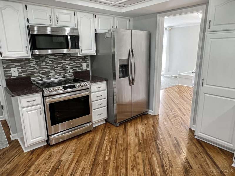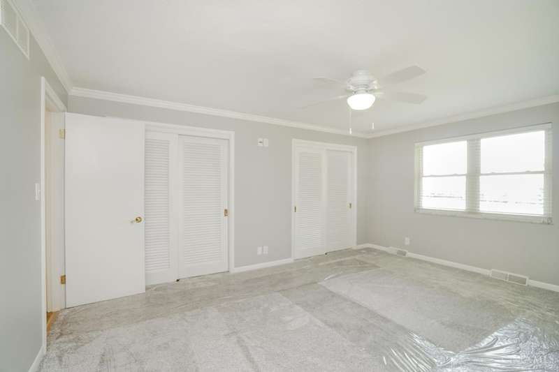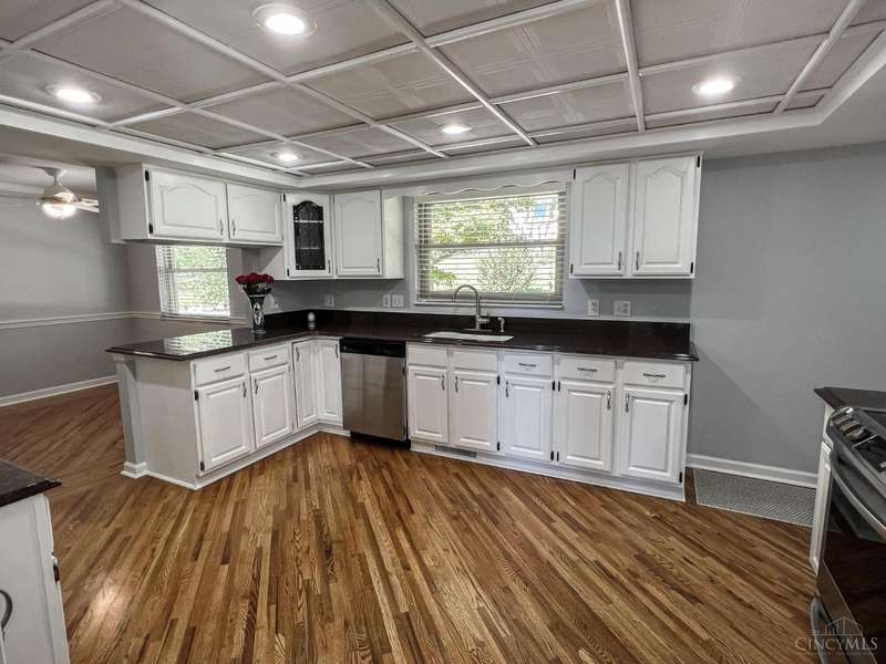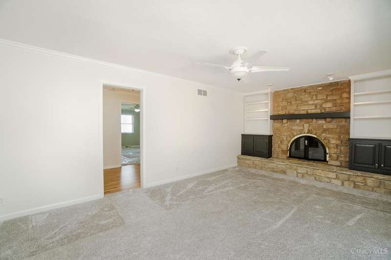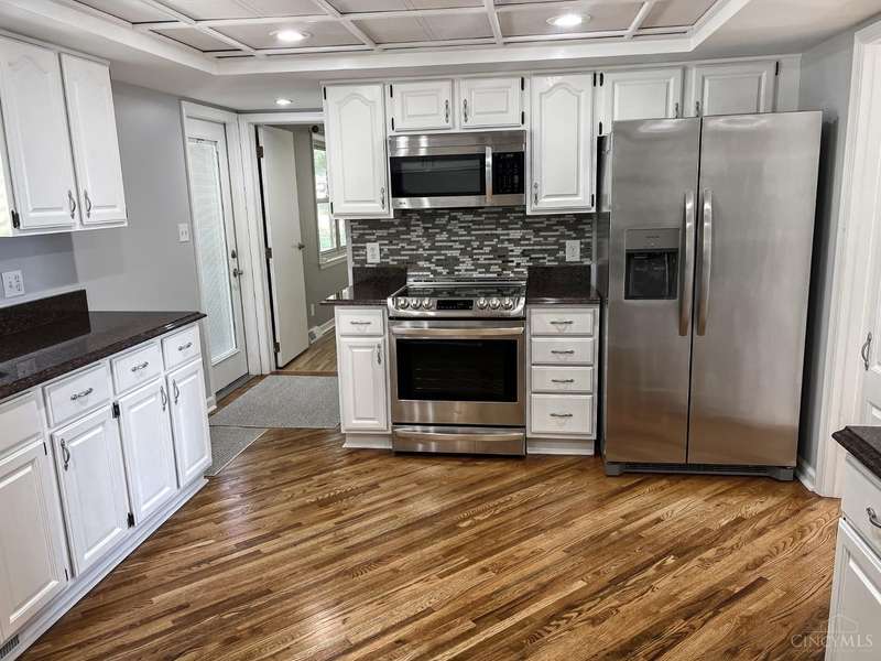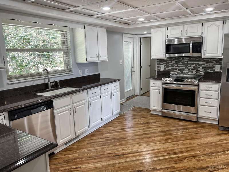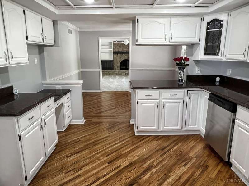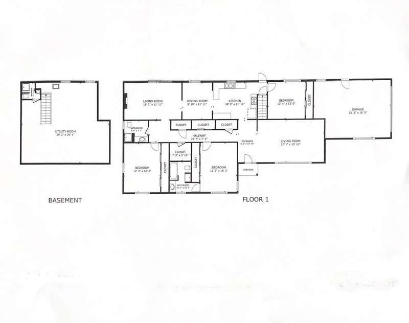 Discover peace and privacy in this beautifully maintained ranch nestled on over an acre of land filled with mature trees. Inside, you'll find a large living room with a cozy stone fireplace and mirrored accents that enhance the natural light. The generous kitchen features granite countertops, stainless steel appliances, abundant cabinetry, a planning desk, and gleaming hardwood floors, perfect for both daily living and entertaining. Enjoy casual meals in the sunny breakfast nook. Bedrooms are spacious with ample closet space, including a walk-in cedar closet for extra storage. Fresh paint and new carpet throughout add a move-in-ready touch. Outside, relax and unwind on this picturesque lot complete with a storage shed and room to roam. Extra exterior lighting @ night & garage is 23 ft x 27 ft length in one area. Will put 1ST FLOOR laundry in hallway closet in 1st floor if buyer wants it. To see floor plan and 3D Video go to Homes.com. Hardwood floors redone - darker shade in pictures.