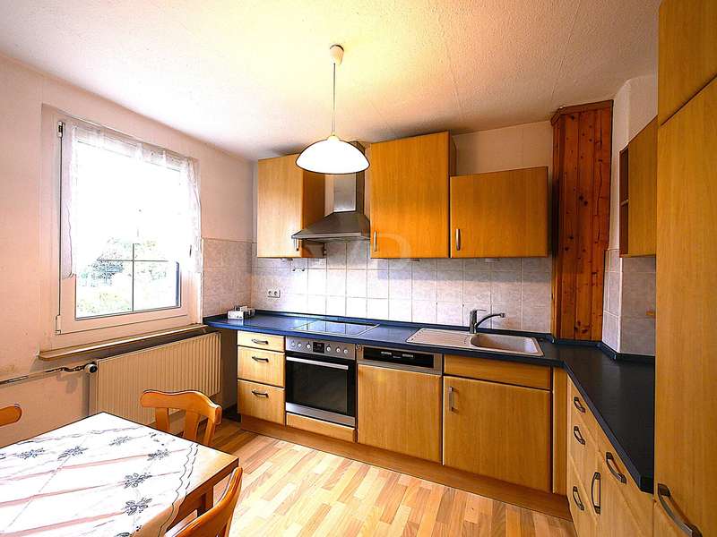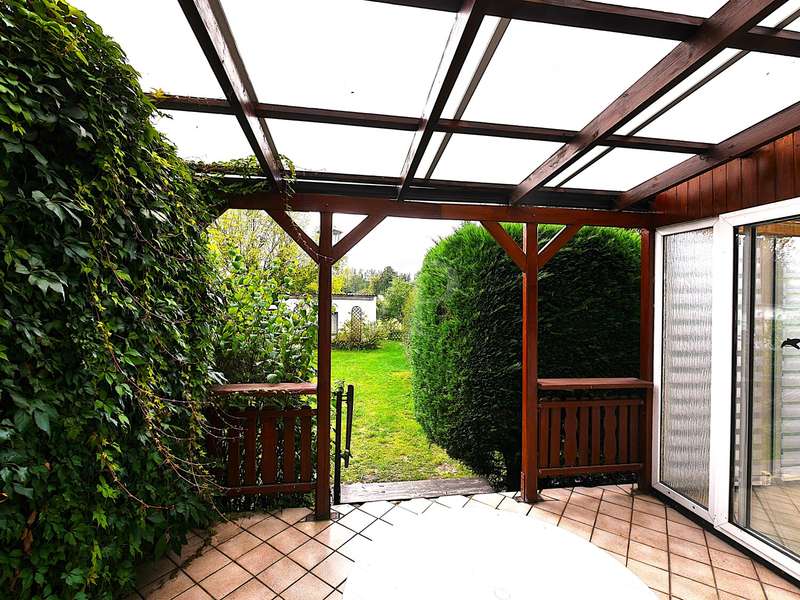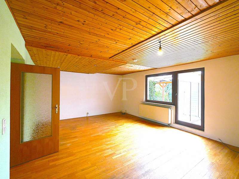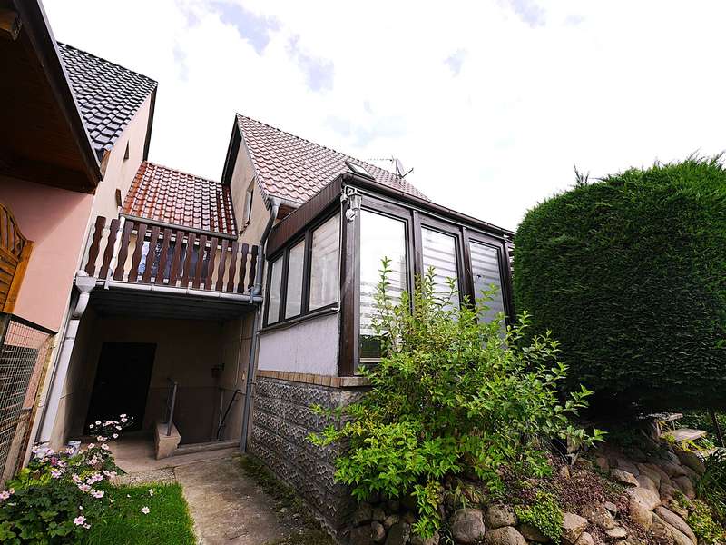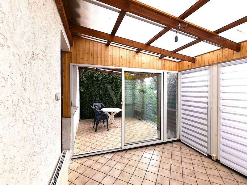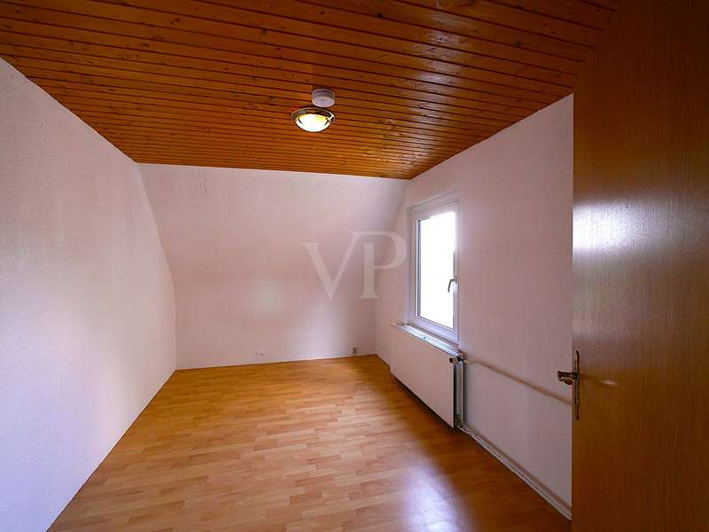 This well-kept end terraced house from 1986 has a living space of approx. 119.55 m² and offers numerous design options for families and couples alike. The attractively designed house is situated on a spacious plot of around 705 m² and has a total of 4 rooms, including 3 good-sized bedrooms and two daylight bathrooms, which enhance the living comfort. The room layout is modern and functional: on the first floor, you will find an inviting living room with direct access to one of the two terraces and the adjoining heated conservatory. Generous window areas provide a pleasant flood of light here. The closed eat-in kitchen is equipped with a fitted kitchen and offers enough space for communal meals. A guest WC with natural light on the same level is a practical addition. The staircase leads to the upper floor, where there are three bright bedrooms and a daylight bathroom with bathtub. The fully developed attic opens up additional possibilities for use - whether as a work area, hobby room or storage space. The house has a full basement and therefore offers plenty of space for housekeeping, hobbies or additional storage. There is also a garage, a covered carport and further outbuildings, which provide ample space for vehicles and garden tools. A plus for families or garden lovers is the spacious outdoor area with two terraces, which invites you to linger outdoors. The property has been continuously modernized. Most recently, the fence to the left neighbor was replaced in 2024. A new gas condensing boiler was installed in 2022 and the exterior conservatory surround was renewed the previous year. Earlier measures such as the installation of double-glazed plastic windows on the window side, the fitting of exterior thermal plaster, the renovation of the roof and a conversion of the heating to gas ensure that the house is in good condition. The house is in need of renovation and therefore offers scope for individual adaptations and modernization according to your own wishes. Arrange a viewing appointment and see for yourself how much potential this property has for your living requirements.