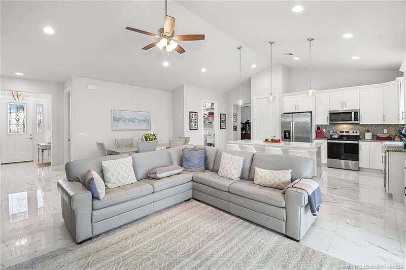 Beautiful 4-Bedr?om ?om? in ??ught?After Windy Pine? E?tateDon't miss this meticulously maintained 4-bedroom, 2-bathroom home located in the desirable Windy Pines Estate within the Torrino area of Port St. Lucie. Featuring a spacious open-concept layout, this home is perfect for entertaining. The modern kitchen boasts white shaker cabinets, a large island, and elegant quartz countertops. The primary suite offers a walk-in closet and a private en-suite bathroom for your comfort. Additional highlights include impact-resistant windows and doors for peace of mind. Conveniently located near Mets Stadium, the shops and restaurants of St. Lucie West, and easy access to I-95.
