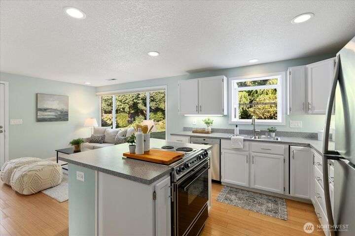 Welcome to the Edmonds Bowl! This dreamy rambler radiates charm, light, and style. Bright, open kitchen with eat-in space, updated bathrooms with a walk-in shower, and storage throughout make daily living effortless. Stunning windows fill the home with natural light and showcase all that Edmonds has to offer. Entertain in the beautifully landscaped yard, sip morning coffee on the deck as birds chirp, or unwind inside. Located in one of the most coveted spots in town, with unmatched access to shops, cafes, parks, and everything you love—this home is pure lifestyle perfection.