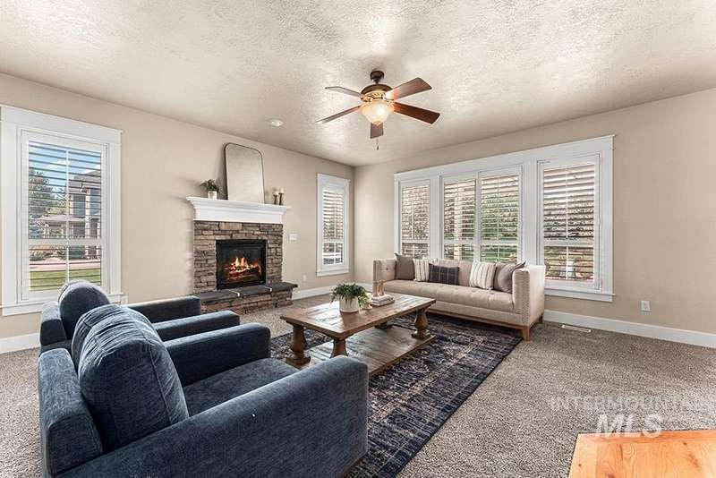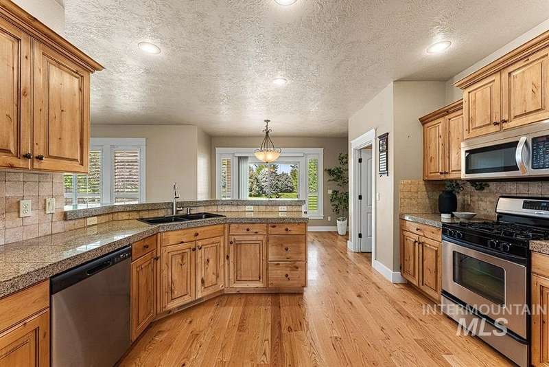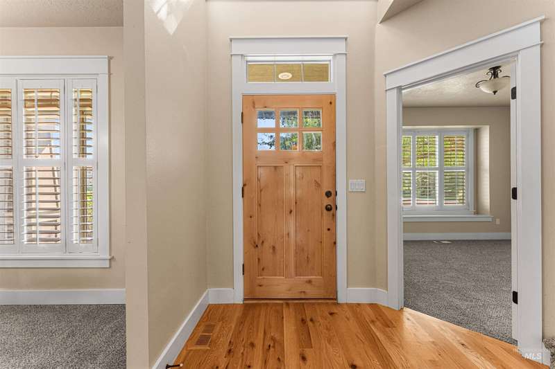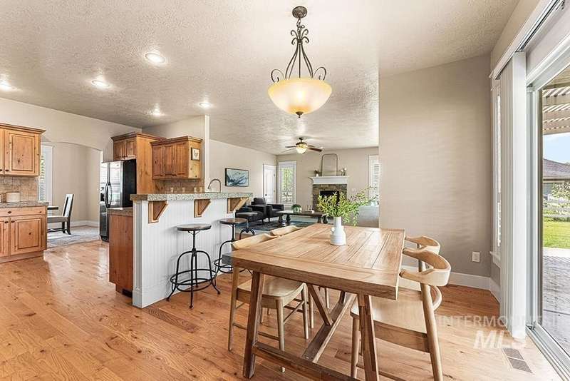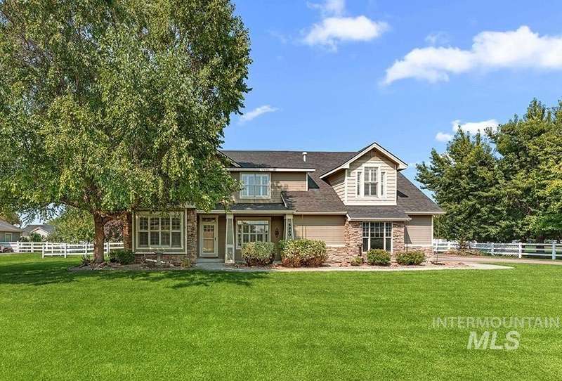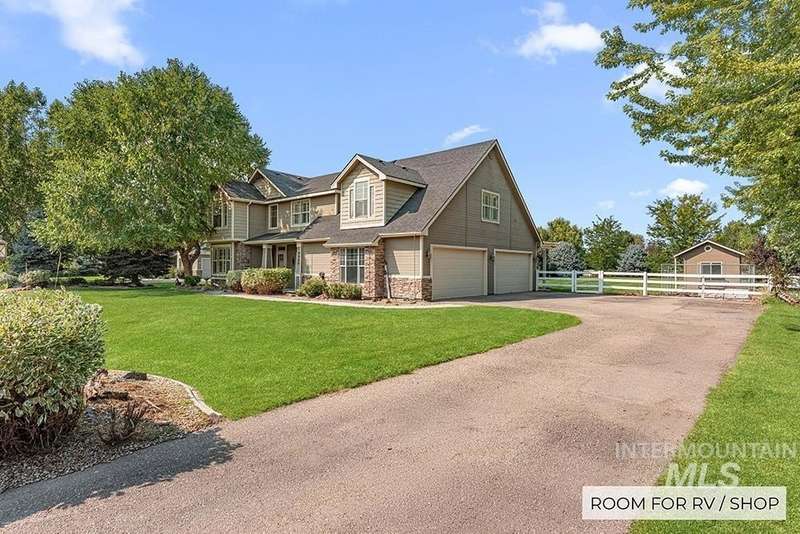Craftsman-style custom home on nearly an acre! The sprawling flat lawn is enveloped by mature privacy trees, offering limitless potential to build a pool, customize your dream backyard, add accessory structures, or create a home garden, this property is a blank canvas for your vision. Inside, rich hardwood flooring flows throughout the home, leading you to a cozy living room featuring a stacked stone fireplace, plantation shutters, and a semi-open concept layout. The kitchen showcases custom alder cabinetry, granite countertops, & stainless steel appliances. Entertain with ease in the formal dining room for dinner parties, or enjoy casual meals in the breakfast area w/ direct access to the patio. The master includes an en suite bathroom with dual vanities, & walk-in closet w/ direct access to laundry. Large bonus room provides flexible space for a home theater or game room with plenty of space to entertain. Step outside to the covered patio for outdoor entertaining around the flagstone firepit!