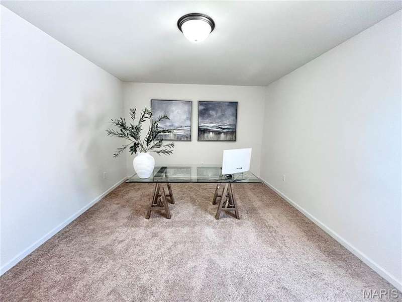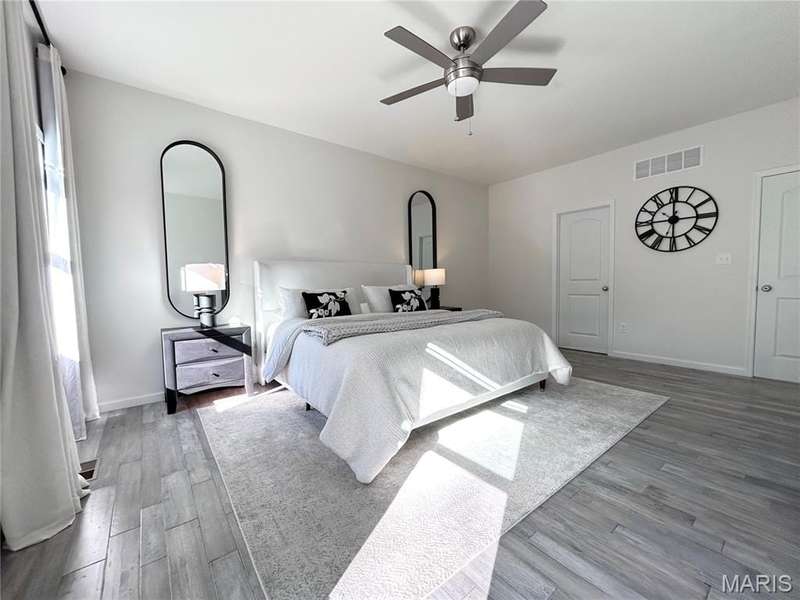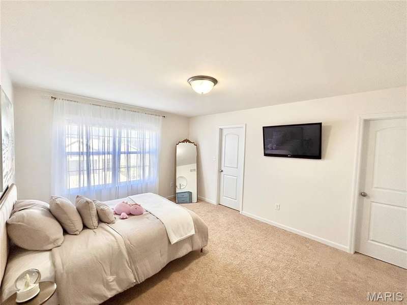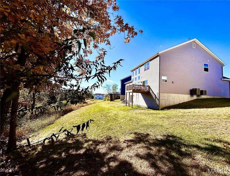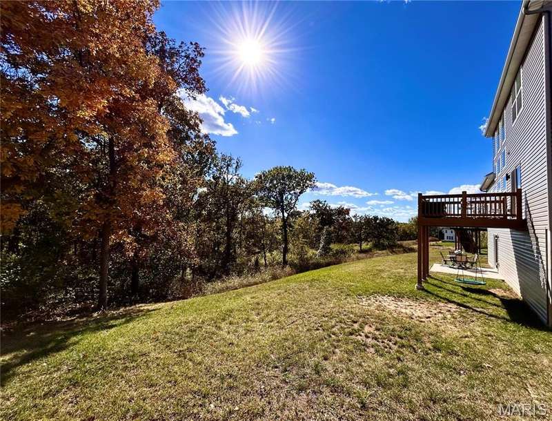 Stunning 2-year-old home with soaring 19-ft ceilings and a wall of windows in the living room. Hardwood floors throughout main areas and upper hall. Chefs kitchen with quartz waterfall island, 42 soft-close cabinets, gas range, and walk-in pantry. Main-level primary suite plus 3 more bedrooms and 4 baths total. Walkout basement ready to finish. Relax on the deck or patio overlooking peaceful woods. Plus New roof, siding, gutters, driveway, and radon system. All appliances stay! Friendly neighbors and a warm, welcoming community.