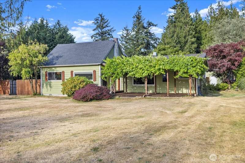 Turn-key equestrian property featuring a 9-stall barn with tack room, 10-ton hayloft and 60x100 covered riding arena! Charming 1920's farmhouse situated on 4.59 acres with newly built oversized garage with separate shop/workspace! Gated and fully fenced with usable, flat pasture area. Outdoor oasis featuring a variety of fruit trees and grapevines, covered fireplace, cedar grove with trails and wired for a hot tub. Ductless mini split too! Convenient, yet private Lakewood location close to shopping, restaurants, medical facilities and I-5!
