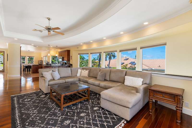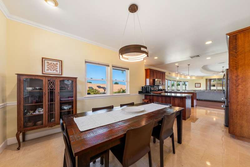 Located at the end of a peaceful cul-de-sac and bordering a lush greenbelt, this exceptionally designed 4 bedroom, 2.5 bathroom home in the prestigious Wailea Kialoa community offers privacy and ocean, sunset, and neighbor island views. The split-level layout provides effortless living with the main level featuring a gourmet chef’s kitchen, a formal dining room, a spacious living area, a luxurious primary suite, a bedroom that serves well as a private office, a powder room, and an attached garage—all designed for comfort and style. The lower level is an entertainer’s dream, with a large den that includes a wet bar, under-counter fridge, wine fridge, and easy access to the pool deck, BBQ area, and a serene private backyard. Luxuriously appointed throughout, the home showcases crème Vienna limestone and burled eucalyptus flooring, rare green granite countertops, and custom cherry cabinetry, highlighting the attention to detail and quality craftsmanship. A laundry room and ample storage areas add to the convenience of this warm and inviting home. The garage is equipped to store your golf clubs, surfboards, and recreational gear, ensuring you are always ready for Maui’s outdoor adventures. Both a PV solar system and a solar water system are in place, thereby reducing the ecological footprint of the property, while the private backyard offers ample space for a garden, creating a perfect blend of luxury and sustainability.
