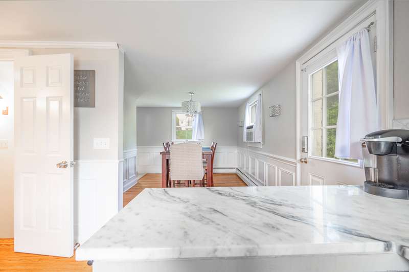 Lovingly updated and spacious 4-6 bedroom Colonial, just one minute to the New York border! This unbelievable location is ideal for commuters and offers an optional membership to nearby Ball Pond's picturesque beach and boating area. Enjoy hardwood flooring throughout, with updated kitchen and bathrooms on the main level, plus cozy dining room, spacious living room and two bonus rooms (one with a full bathroom) that could be used as bedrooms or home offices. The upstairs has four more good-sized rooms and an updated full bathroom. The recently finished walk-out lower level offers a versatile space for family or guests, with a large family room, half bathroom, laundry area and separate den. There is multi-level wrap-around decking overlooking the back yard for warm weather gatherings and off-street parking in the driveway. Located on a dead-end street, just a short walk to Ball Pond or Putnam Lake. Room for everyone and everything's been done!