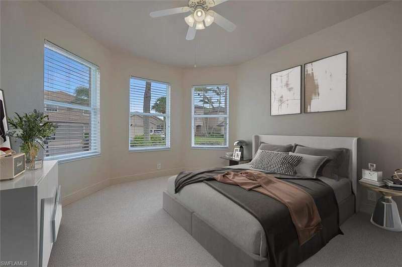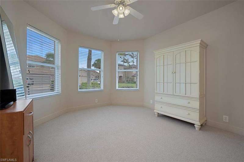 MOTIVATED SELLER! BRING ALL REASONABLE OFFERS! Location. Location. Location. 5 minutes from Everywhere. New Roof in 2025! New Exterior Paint! No Flooding from Hurricanes. Beautiful move-in ready freshly Painted exterior, Arthur Rutenberg San Marco home located in the highly desirable Rookery Pointe neighborhood off of Corkscrew Rd in Estero. You will fall in love with this beautiful well-maintained open concept home offering 2 Bedrooms Plus Den and 2 Bathrooms with a Pool on hte LAKE. Located on a quiet private street you will enjoy the SWFL Sunsets over the pristine Lake. Big Bright Living Room, 4 Bay Windows in cafe, Spacious Kitchen, Large Island, Breakfast Bar, New Appliances, New Washer/Dryer, Formal Dining Area, Oversized 2 Car Garage with epoxy Floor and Private Backyard with Pool(New Pool Pump 2024). Tastefully decorated and furnished. New Ceiling fans, Door Hardware, Kitchen Faucet, carpeting, and epoxy coated garage floor. Newer AC and hot water Heater. You will not be disappointed! The Amenities at Rookery Pointe include a Community Clubhouse, Resort-Style Pool with Lap Lanes, Fitness Center, Pickle Ball, Tennis, Children's Playground, Basketball Court, Media Room, Inline Skating Rink, and Tennis Courts. Located just 2 miles from Coconut Point Mall and Gulf Coast Town Center and close-proximity to SWFL beaches, RSW International Airport (10 Minutes), Shopping, Dining, Entertainment, World Class Healthcare and I-75.
