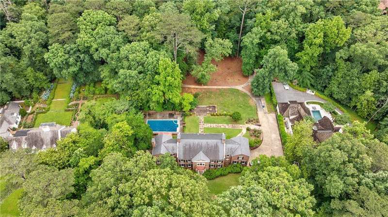 Truly a special opportunity to reimagine a classic 1930s residence, originally designed by renowned architects Frazier and Bodin, on one of Buckhead's most cherished streets-Blackland Road. Nestled on approximately 2.2 acres in the heart of Tuxedo Park, this well-preserved home sits gracefully on a rolling front lawn, offering timeless curb appeal, a pool, and a spacious grassy backyard. A grand foyer welcomes you inside, leading to generous living and entertaining spaces accented by high ceilings and elegant crown molding. The main level features a guest bedroom and full bath, perfect for hosting visitors. Upstairs, an intricate staircase leads to five bedrooms and four and a half baths, including an expansive primary wing with dual bathrooms and a serene sitting area. With endless potential for a transformative renovation, this home is a rare find on an exceptional lot. A must-see in Tuxedo Park.