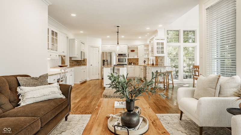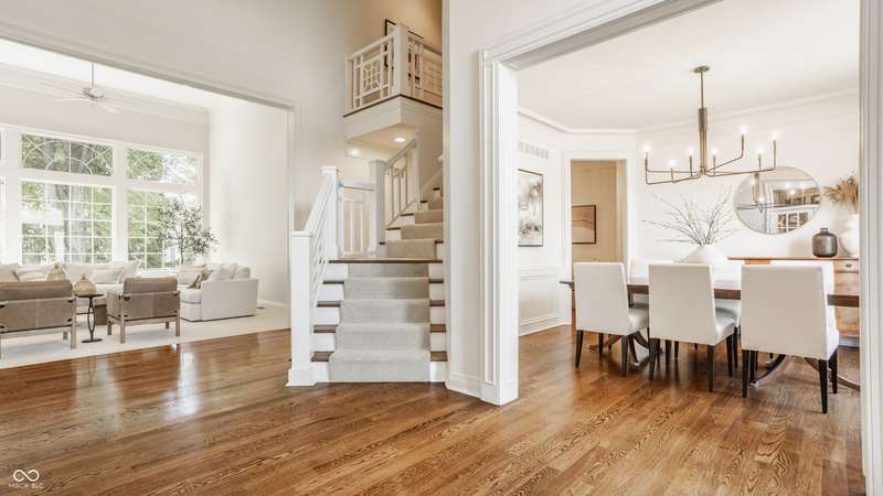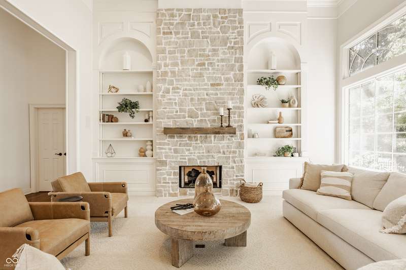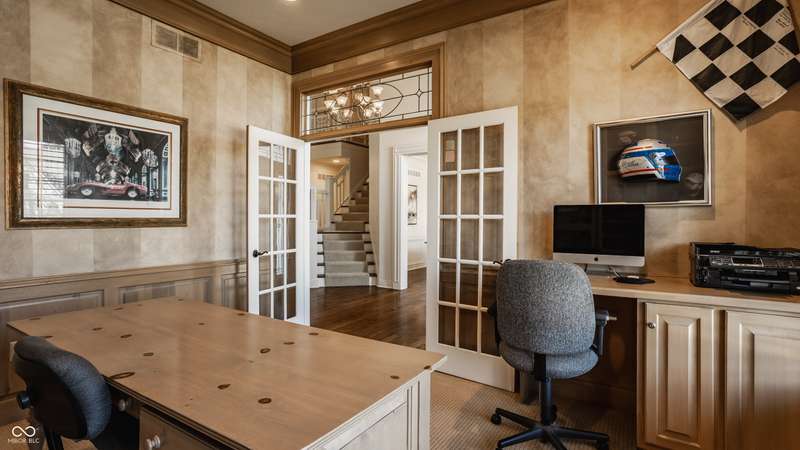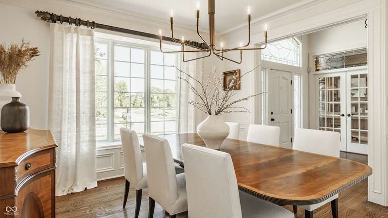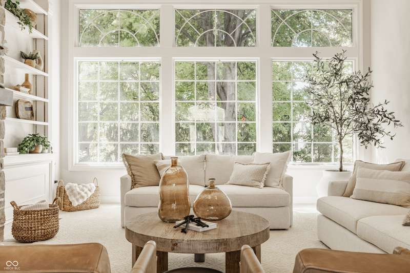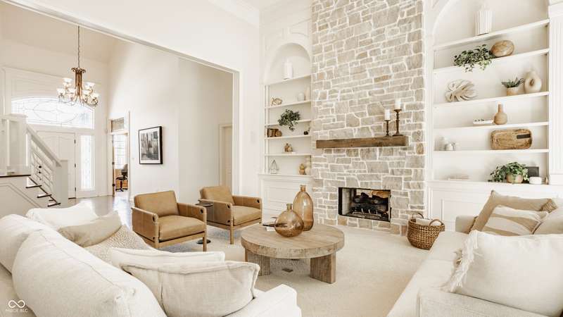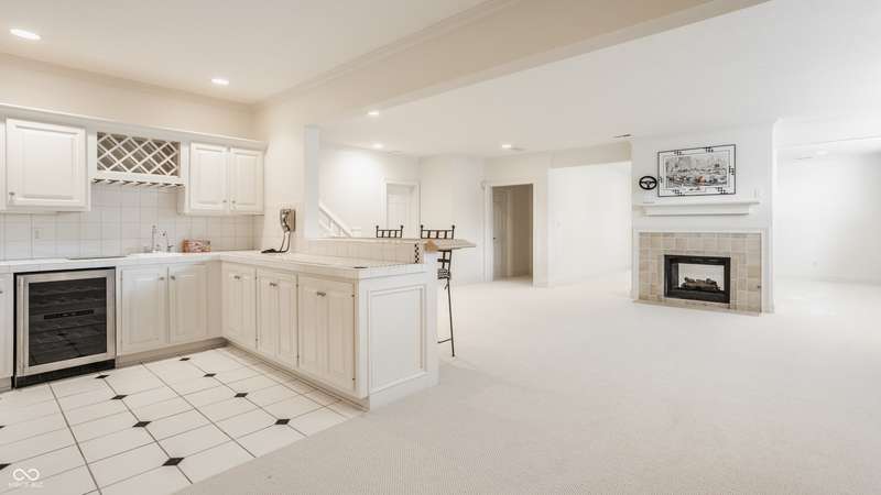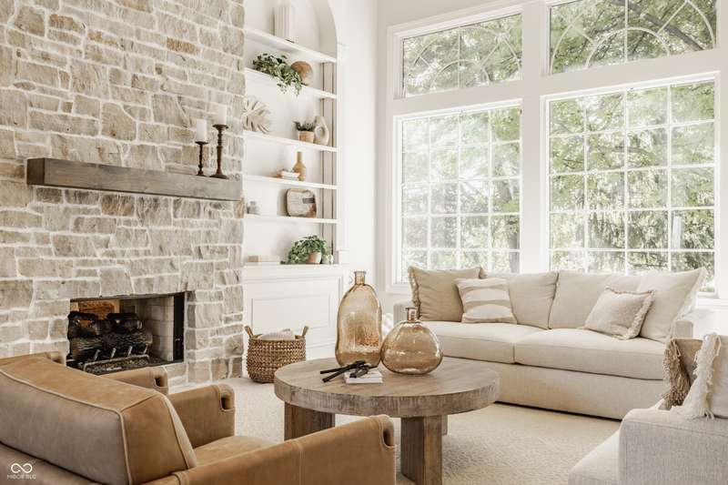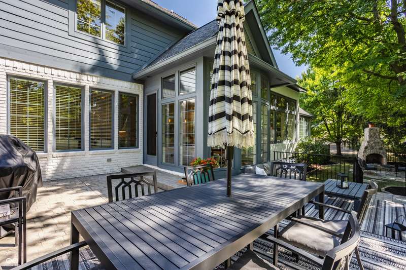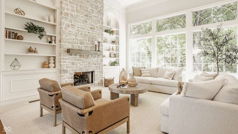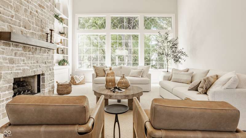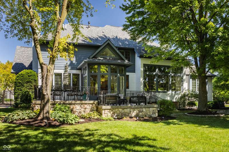 Bathed in natural light and designed with timeless style, this truly custom Claridge Farm home--on the market for the first time--offers the warmth and character of a Nancy Meyers film brought to life. Floor-to-ceiling great room windows, complemented by a full-height stone fireplace surround, frame breathtaking views of the private tree-lined yard and extend into the kitchen and hearth room. With 5 bedrooms including a main-floor primary suite, 4.5 bathrooms, and 4 indoor fireplaces, the home blends elegance and comfort at every turn. The spacious daylight basement adds versatility w/ a large rec area, gift-wrapping & workstation, office/bedroom, exercise room, ample storage, and a custom bar featuring race cars driven by the Seller--an homage to Indianapolis race history. Outdoors, entertain on the raised patio beneath mature trees and gather around the 5th fireplace for year-round enjoyment. Set in the prestigious front estate section of Claridge Farm, known for its tree-lined streets, community amenities, and prime West Carmel location. Walk to Clay Center Elementary! Extensive list of recent improvements enclosed.