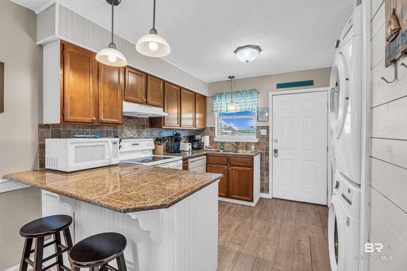 Welcome to your new island getaway! This updated condo is ready to be your peaceful retreat or money-making rental. Inside, you will find a spacious layout with tasteful furniture and decor. The kitchen features granite countertops and has plenty of space to enjoy cooking the catch of the day or mixing your favorite drink. A pull-out sofa in the living room offers extra sleeping space and a spot to relax after a fun day at the beach, and just beyond, a private balcony overlooks the sparkling pools. Both bedrooms have king-sized beds and tranquil finishes, and the primary suite has lovely lagoon views. Covered parking for two vehicles, as well as an area to store your beach toys, is located on ground level. Deeded beach access for owners and guests is steps away, as are two pools, barbecue areas, picnic tables and a green space for owners to walk their pets. Lani Kai Village is centrally located on West Beach Boulevard, giving you quick and easy access to wonderful restaurants, beach shops, and area attractions. Come see why this condo complex is a favorite and what makes this particular unit a standout! You and your renters will love Lani Kai condo #121! Buyer to verify all information during due diligence.