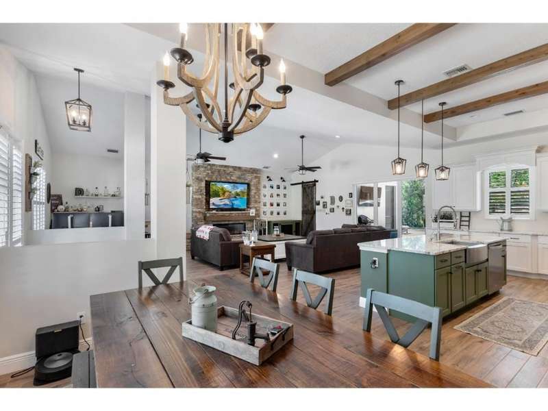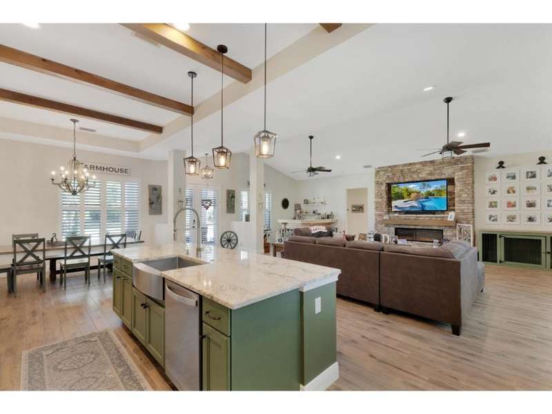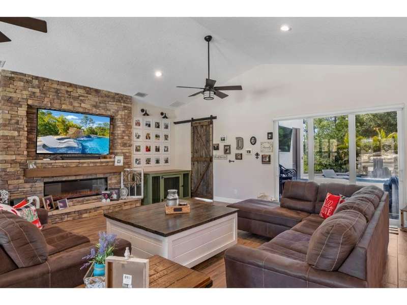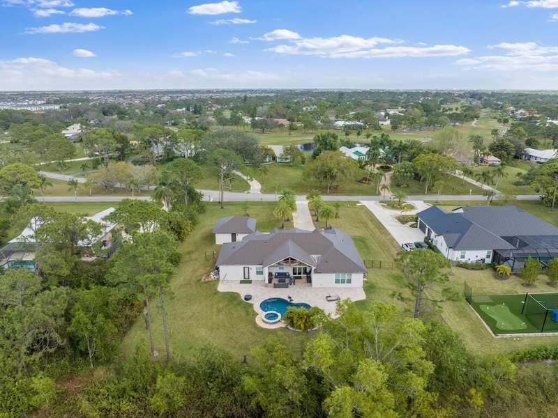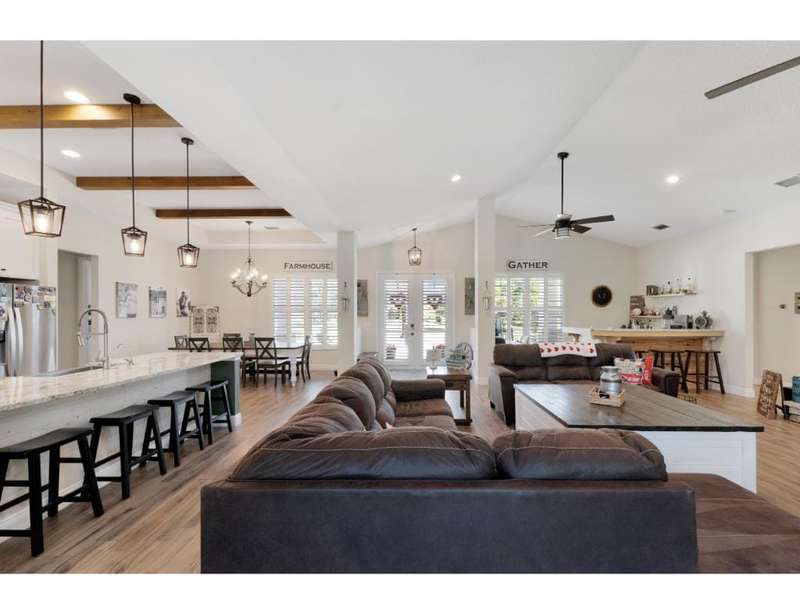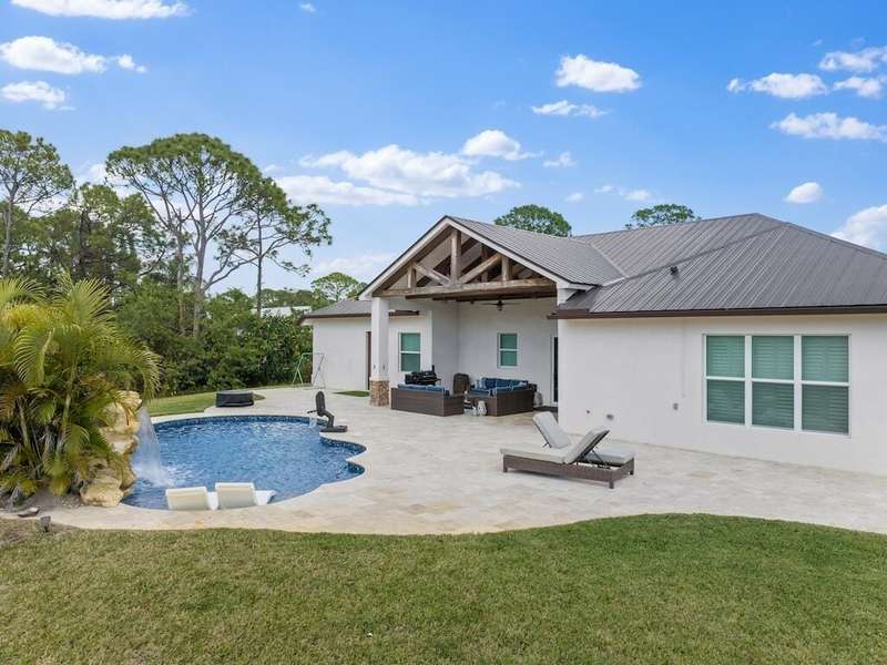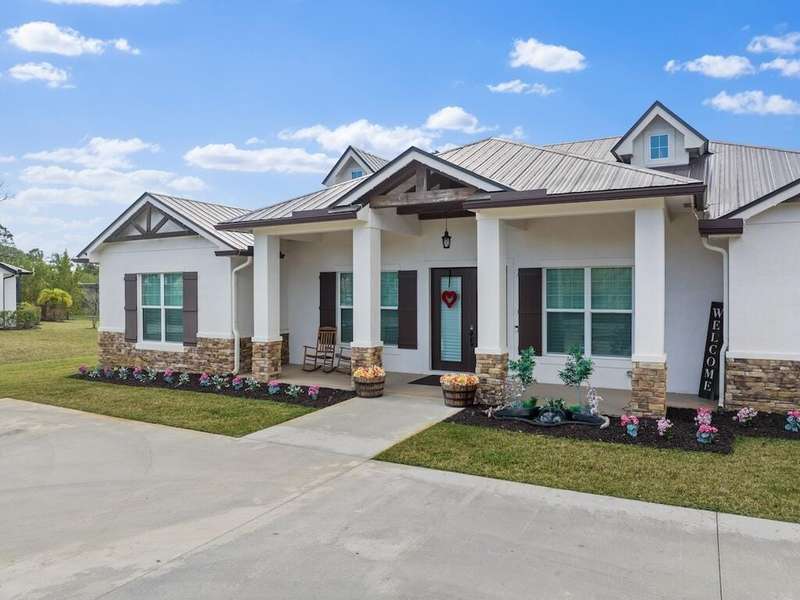 Welcome home! Discover this exceptional CBS residence in the highly sought-after Evergreen/Crane Watch neighborhood. This meticulously maintained property is situated on a 1-acre lot and was constructed in 2020. The home features 3 bedrooms, 2 1/2 bathrooms, an oversized detached 2-car garage, and a spacious flex room (19' x 10') suitable as a game room or 4th bedroom. Highlights include a metal roof, hurricane impact windows and doors, over 3,000 square feet of living space, and a custom pool with a built-in jacuzzi and rock waterfall. Additional amenities comprise a custom-built bar with a Granite Countertop and Plantation Shutters throughout.