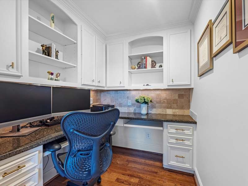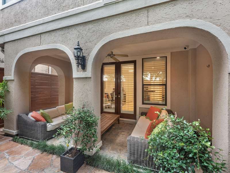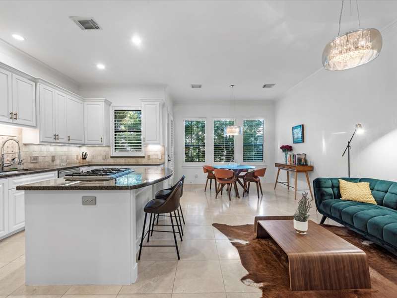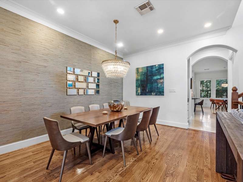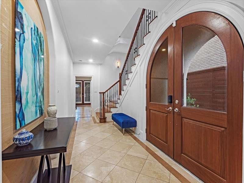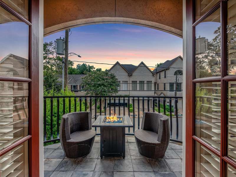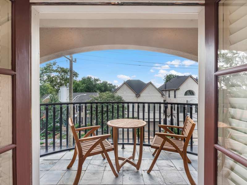 Beautifully maintained 3-story townhome in the heart of River Oaks Shopping District, offering a rare combination of space, privacy, and walkability. The first floor features a guest suite with en-suite bath, walk-in closet, and access to a covered patio surrounded by privacy trees. On the second level, enjoy high ceilings, solid wood and travertine floors, a formal living room with fireplace and built-ins, wet bar, formal dining, and an island kitchen that opens to a sunny breakfast area and balcony. The third-floor primary suite includes a sitting area, large walk-in closet, and a spa-like bath with jetted tub, dual vanities, and walk-in shower. Also upstairs: a secondary en-suite bedroom, utility room, and study with built-ins. Elevator-ready closet, 2 balconies, and 1 patio complete this elegant home just minutes from River Oaks Shopping Center, Common Bond, and Eugene’s.