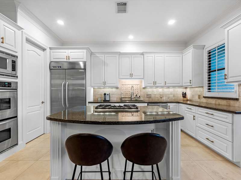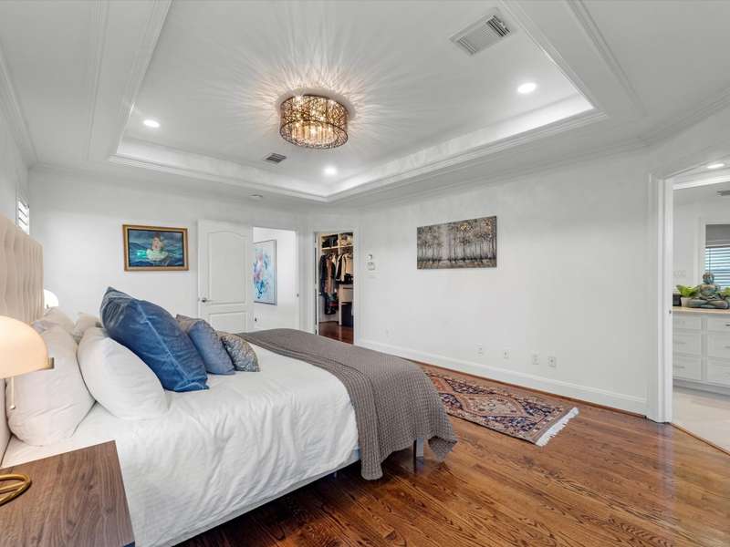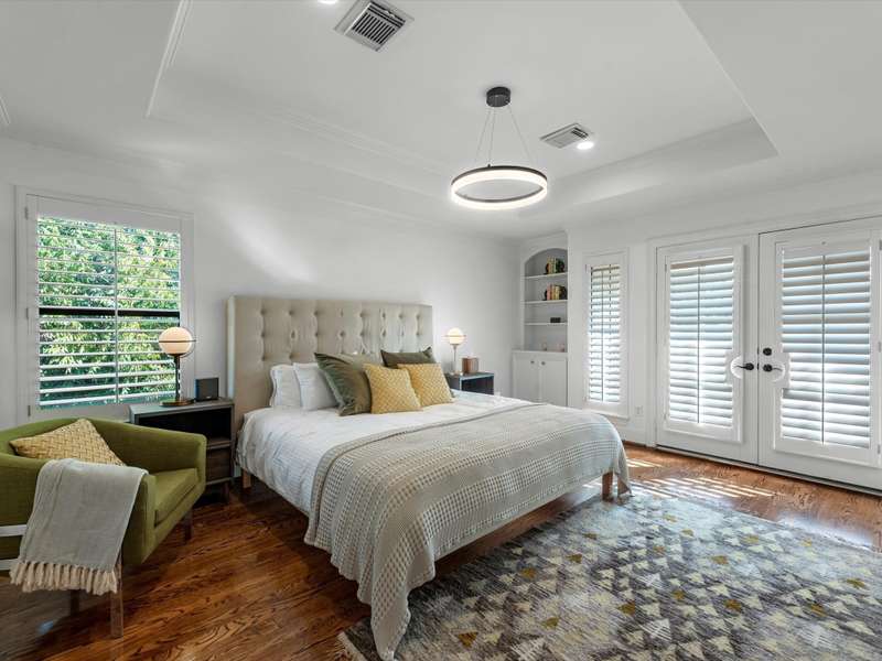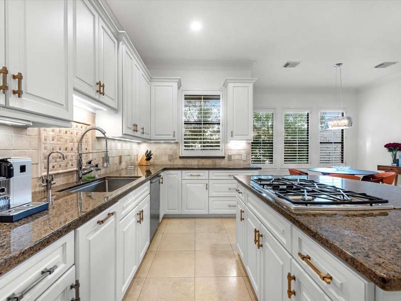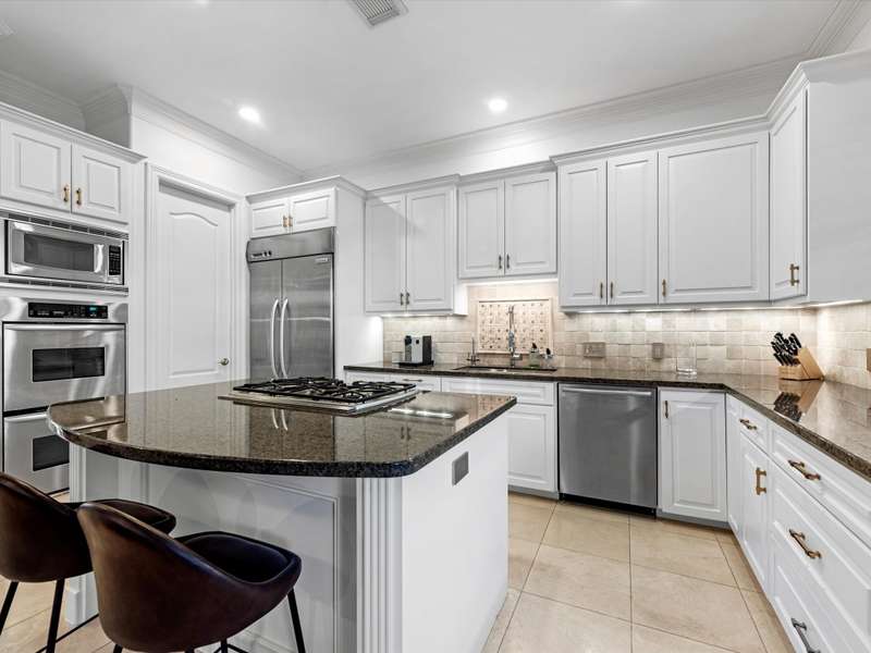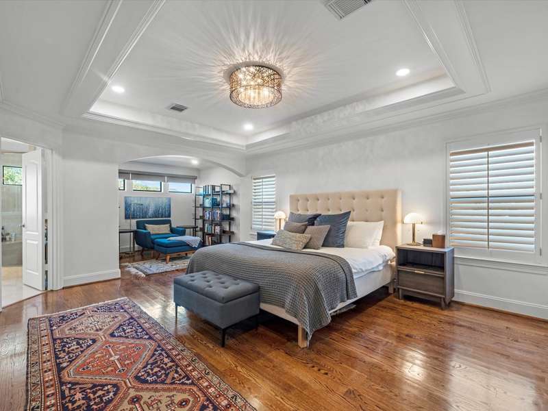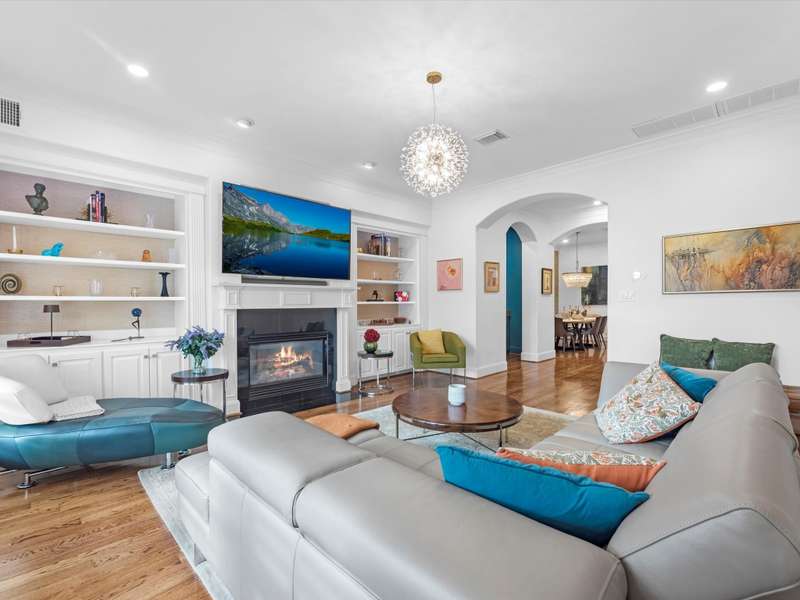 Beautifully maintained 3-story townhome in the heart of River Oaks Shopping District, offering a rare combination of space, privacy, and walkability. The first floor features a guest suite with en-suite bath, walk-in closet, and access to a covered patio surrounded by privacy trees. On the second level, enjoy high ceilings, solid wood and travertine floors, a formal living room with fireplace and built-ins, wet bar, formal dining, and an island kitchen that opens to a sunny breakfast area and balcony. The third-floor primary suite includes a sitting area, large walk-in closet, and a spa-like bath with jetted tub, dual vanities, and walk-in shower. Also upstairs: a secondary en-suite bedroom, utility room, and study with built-ins. Elevator-ready closet, 2 balconies, and 1 patio complete this elegant home just minutes from River Oaks Shopping Center, Common Bond, and Eugene’s.