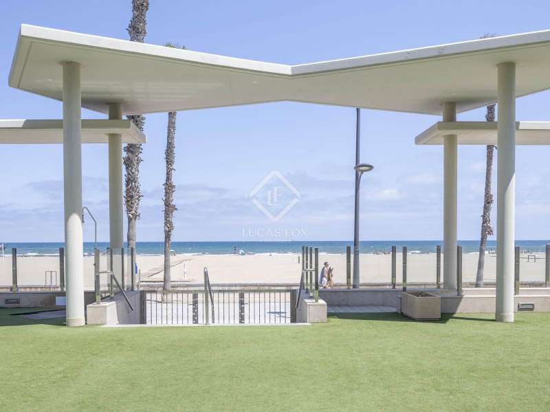 Lucas Fox presents this apartment located in a two-story building on the seafront promenade of Patacona Beach in Valencia. The building has a storage room and parking, as well as a communal terrace and garden with direct access to the beach. The property has a double bedroom and a full bathroom with a bathtub. The entrance leads directly into a spacious living-dining room with a fully equipped open kitchen . The living-dining room opens onto a terrace with sea views. It features high-quality enclosures, a ducted heating and cooling system, motorized blinds, and spacious built-in wardrobes. The property is sold with a garage, storage room, furniture, and appliances. The complex has a concierge, security cameras, and communal areas: a large communal terrace facing the sea with a shower, a communal living room , and bathrooms. Contact us for more information.