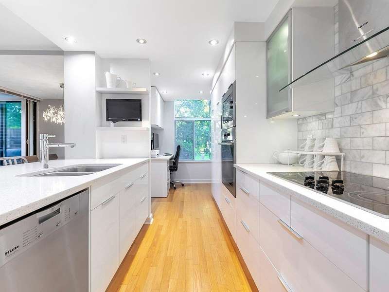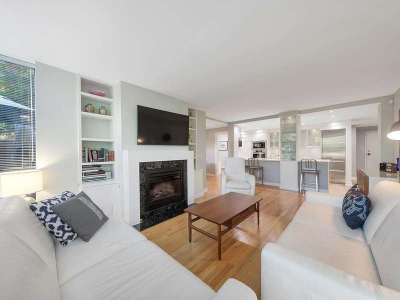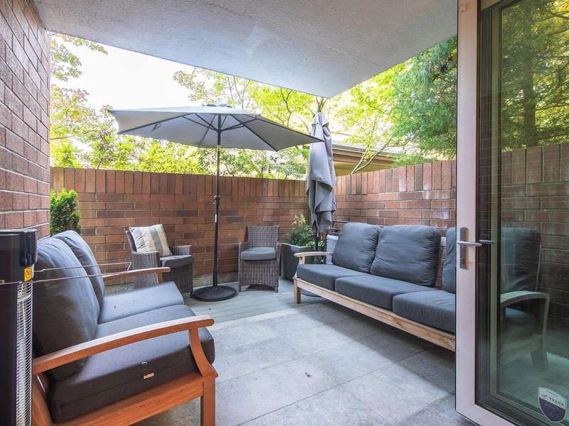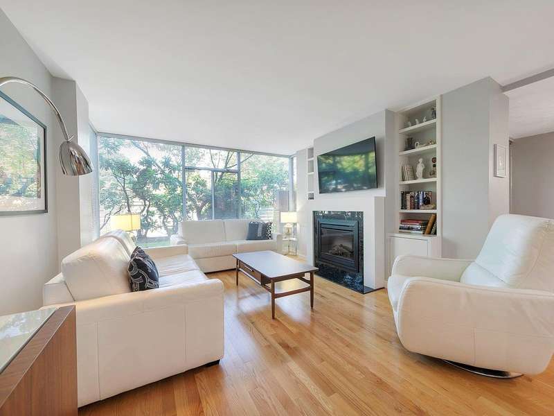 Exceptionally spacious and fully renovated 2-bedroom, 2-bathroom ground-floor apartment in the sought-after concrete mid-rise at Arbutus Village. This bright and airy home features a brand-new contemporary kitchen, modern bathrooms, and large windows that fill the space with natural light. The open-concept layout includes a generous living room with fireplace and dining area opening up to a private covered patio. Nestled in a tranquil, park-like setting, home overlooks beautifully maintained gardens and the outdoor swimming pool. In-suite laundry, 2 side-by-side parking stalls and a storage locker. Located just steps from Safeway, BC Liquor, transit, Arbutus Greenway, and the Arbutus Club. Turn-key home in one of Vancouver’s most desirable neighbourhoods. Trafalgar Elem. & PW Secondary