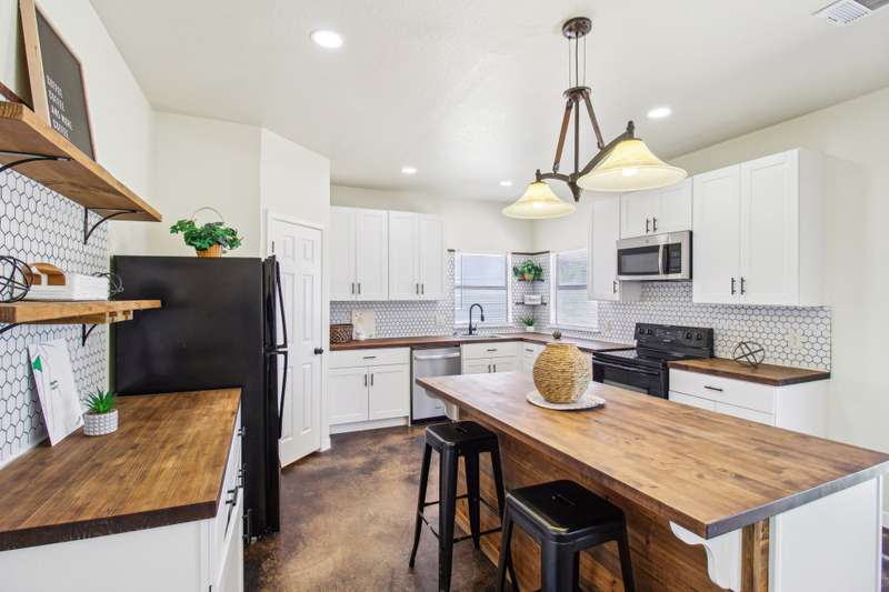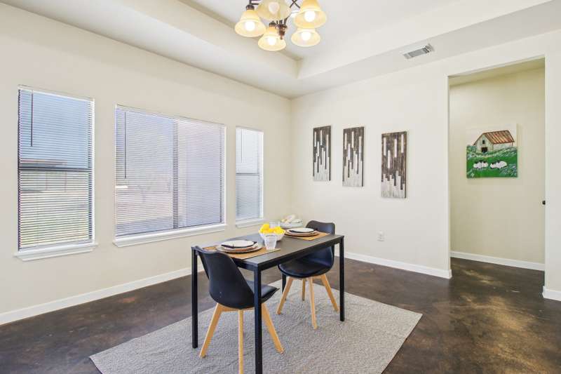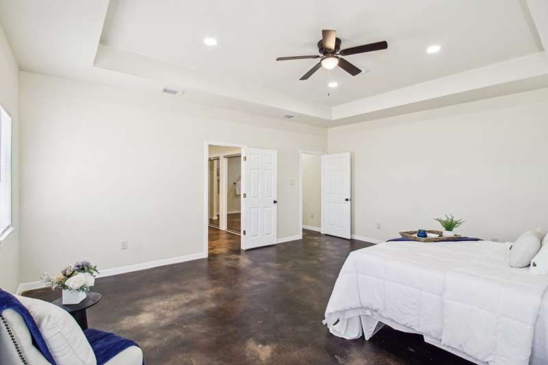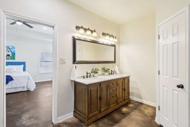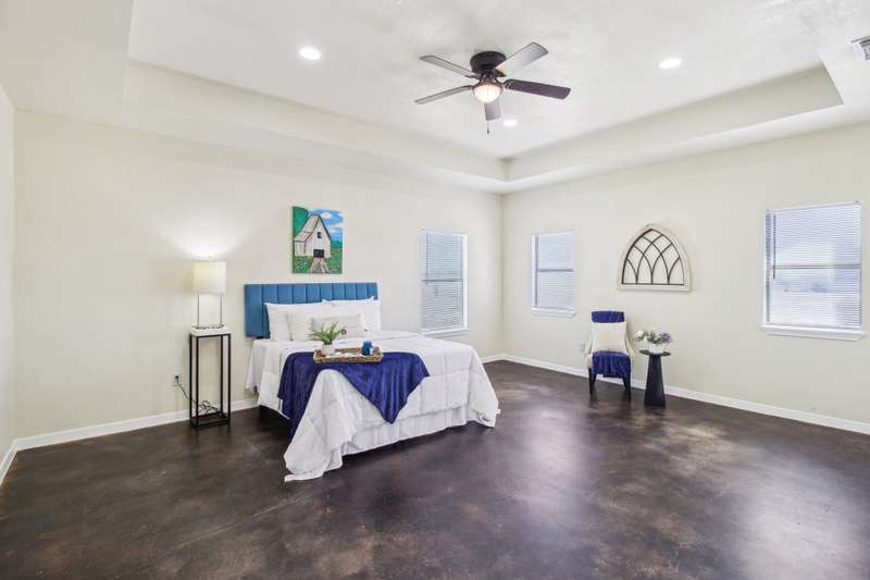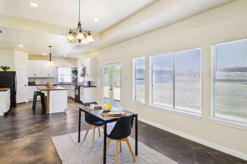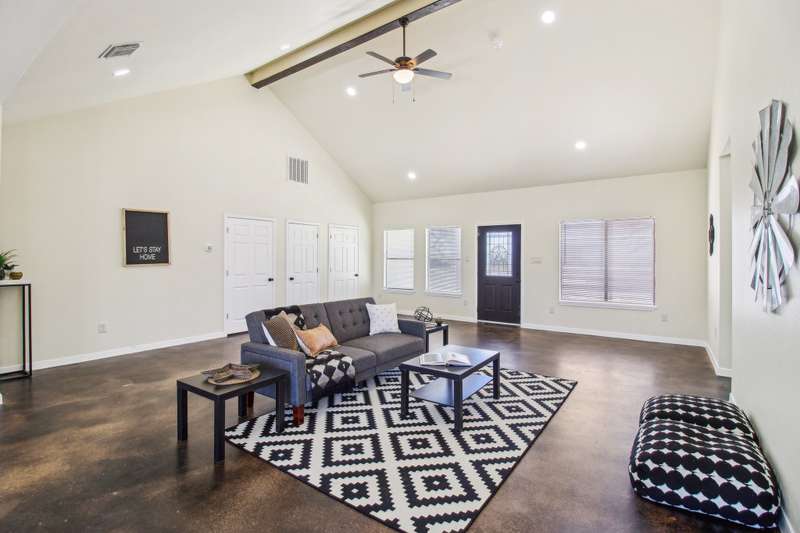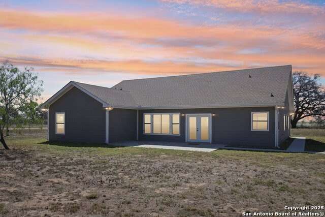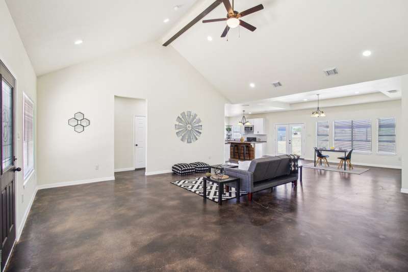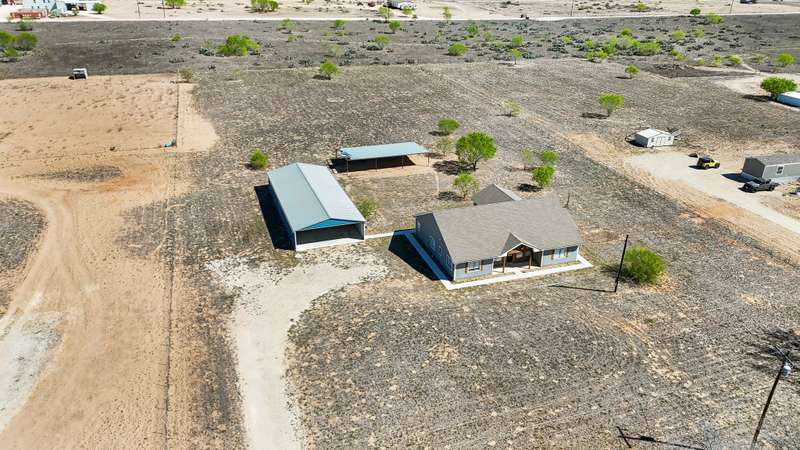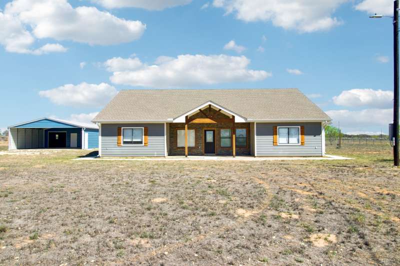 This exquisite ranch-style home, nestled on 3 unrestricted acres near the city of Devine, boasts a charming covered front porch perfect for relaxing and taking in breathtaking sunset views. Upon entering from the porch, a visitor is greeted by stunning stained concrete floors that flow seamlessly throughout the space. The expansive living room features soaring vaulted ceilings, while the open-concept design effortlessly connects the dining room and kitchen, allowing natural light to pour in from every angle. The kitchen is a true showstopper, offering ample cabinet space, elegant dark butcher block countertops, and a spacious pantry. The primary bedroom is a private retreat with a generous walk-in closet and an en-suite bathroom with a sleek glass-fronted standing shower and double vanity sinks. The expansive detached garage, paired with a fully insulated and airconditioned warehouse, offers endless possibilities-whether you need extra storage, a spacious workshop, or even additional living quarters. The space and amenities make this property perfect for many lifestyles, not least the home-based business. This stunning property combines the tranquility of ranch living with the convenience of being just a short distance from the city, offering the perfect balance of rural charm and modern accessibility. Experience the best of both worlds in this exceptional home! - 10/2/2025 3:15:15 AM