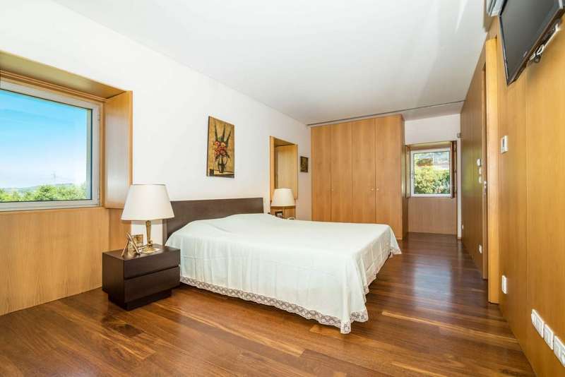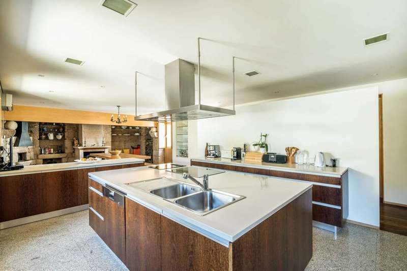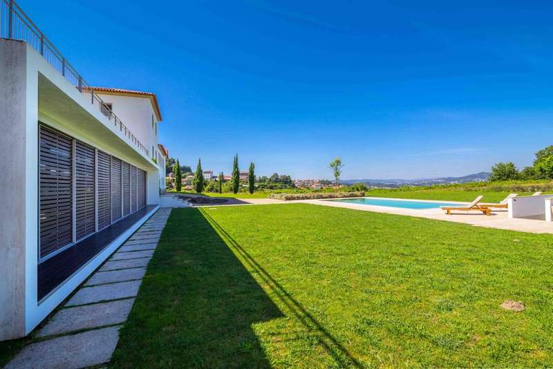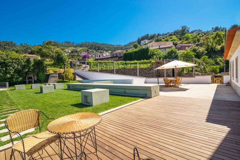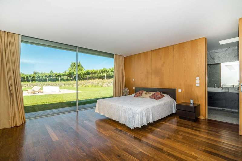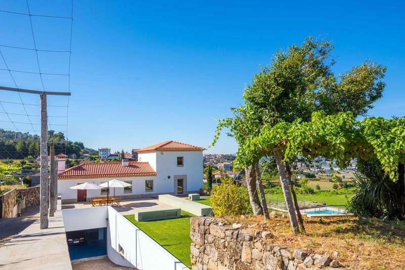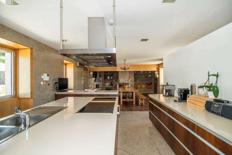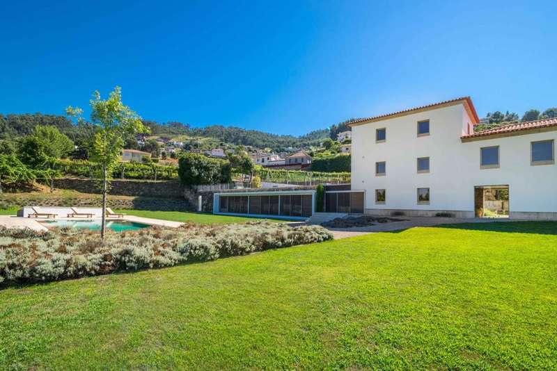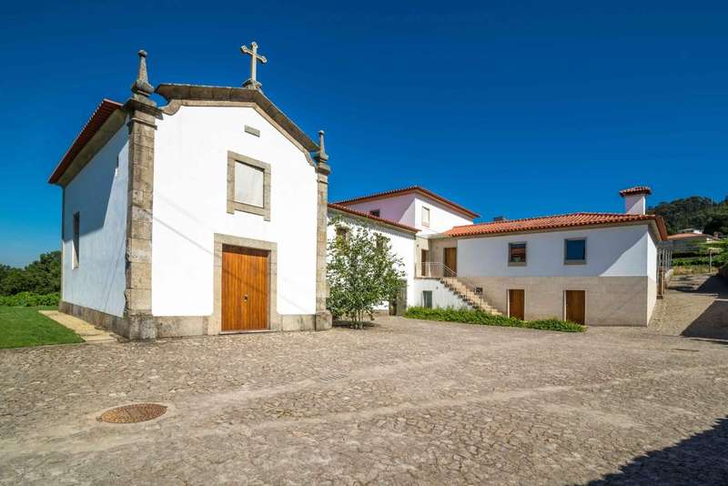 Fantastic farmhouse for sale in Santo Tirso, in the north of Portugal. Located in Romariz, in the historic and religious region known for the monasteries of Roriz and Cigeverga, this property, 15 minutes from the center of Santo Tirso and 40 minutes from Porto, has a beautiful secular manor house that was completely rebuilt in 2009. The reconstruction kept all the original architecture typical of Portuguese manor houses of the time, preserving traditional materials such as the thick granite walls, the stonework window frames and the meticulous restoration of the chapel and its altar, but also created a comfortable and charming interior with all the comforts and finishes of contemporary luxury. The luxurious interior has four large suites, one located in the original wing and the other three in the extension developed so that they could all communicate with the elegant garden and the large outdoor swimming pool. The house has two social areas, one on the second floor, where you'll find a large dining and living room, as well as a guest toilet, plus a fantastic kitchen that combines the original ambience - such as the stone fireplace and wood-burning oven - with the modern environment, where you can enjoy all the equipment with current technologiesand suitable furniture. On the first floor there are two magnificent rooms used as a games room and library, both with direct access to the gardens and the main entrance. The chapel has direct access from the outside, for celebrations open to guests, and also from the inside, on both floors. This project was carried out with every detail in mind, which is why the large storage rooms and garage for 6 to 8 cars were not forgotten. Of particular note are the excellent finishes and acoustic and thermal insulation, as well as the comfort of central heating via underfloor heating in every room throughout the house, including technical areas and the swimming pool changing rooms. The glamor of this magnificent property is completed by its exterior, in which there is a fabulous garden and around four hectares of agricultural land, with a vineyard with vinho verde grape varieties, an organic orchard, as well as an excellent vegetable garden, all tended by a farm manager who lives in the support house inside the farm. The accesses to this property are excellent and its privileged location provides all the facilities for everyday life, as well as a close relationship with large urban centers and the coastal area and beaches. This is an excellent opportunity for those looking for a property as an exclusive residence in a quiet, rural area, or as an investment in a tourist project. CHARACTERISTICS: Plot Area: 43 705 m2 | 470 437 sq ft Deployment Area: 576 m2 | 6 195 sq ft Building Area: 846 m2 | 9 110 sq ft Bedrooms: 4 Bathrooms: 6 Garage: 5 Energy efficiency: A+