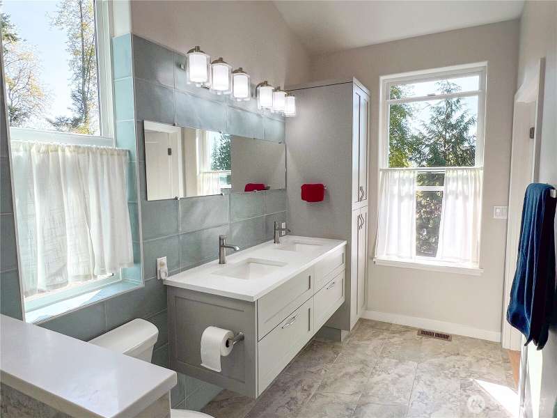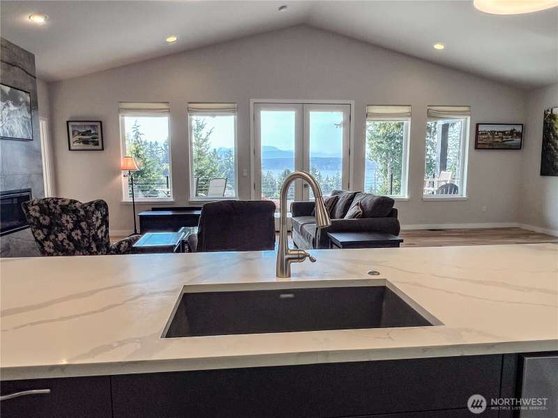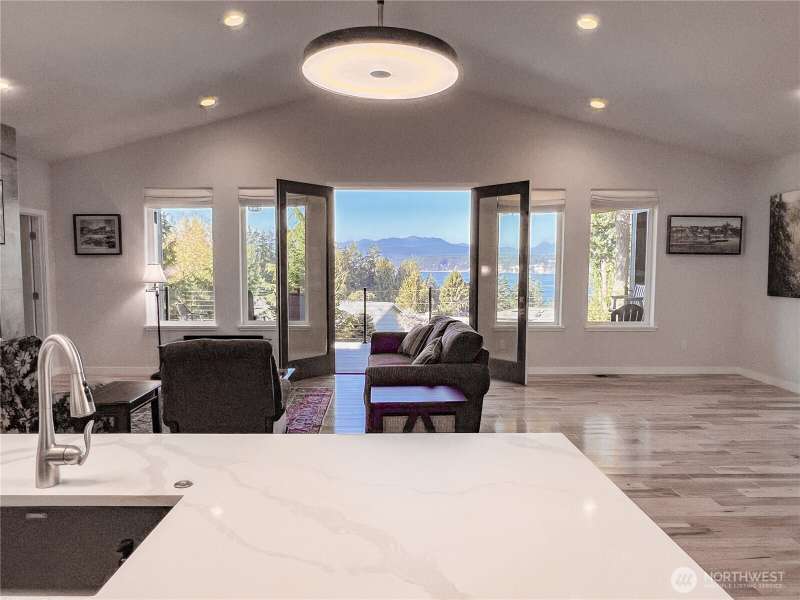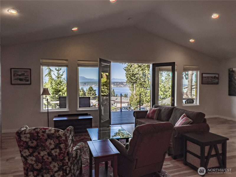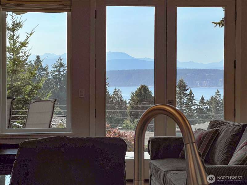Exquisite, like new, truly rare "no step", accessible, custom home to comfortably age in place. On .83 acres, w/spectacular water & mountain views, yet only 12 minutes to delightful downtown Port Townsend. Adorned w/high-end finishes & infrastructure:stunning Hickory hardwood flooring, porcelain tile, UV protected windows, heat pump water heater, water filtration system & softener, induction cooktop, new Bosch dishwasher, Heat & Glo propane fireplace, heat pump w/AC, fenced dog run, Trek decking, and LeafFilter Gutter Protection. Many large West facing windows frame the spectacular views of the Olympic mountains & Discovery Bay and provide captivating views & sensational sunsets from almost every room.Enjoy this beauty as your forever home!