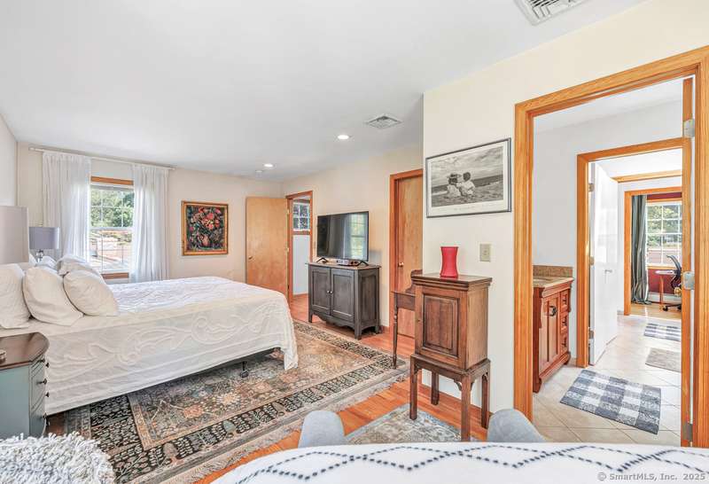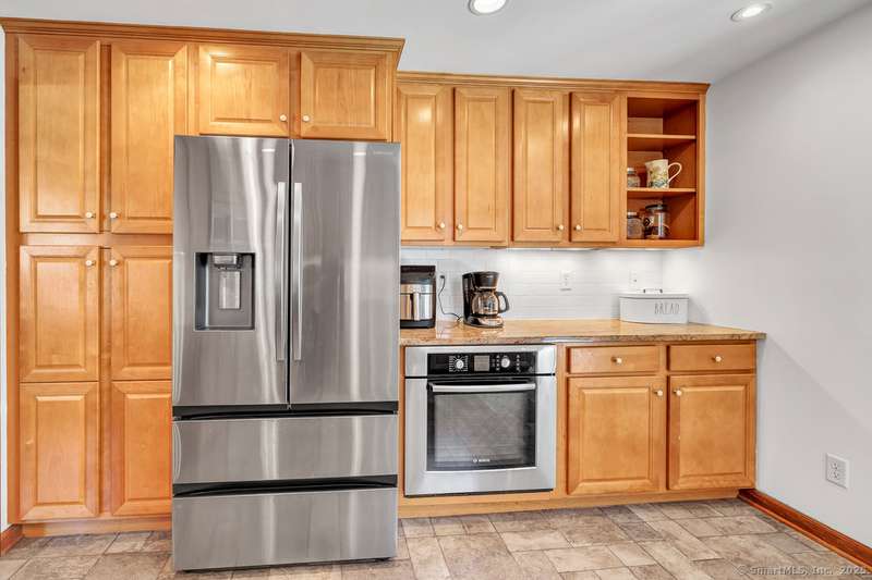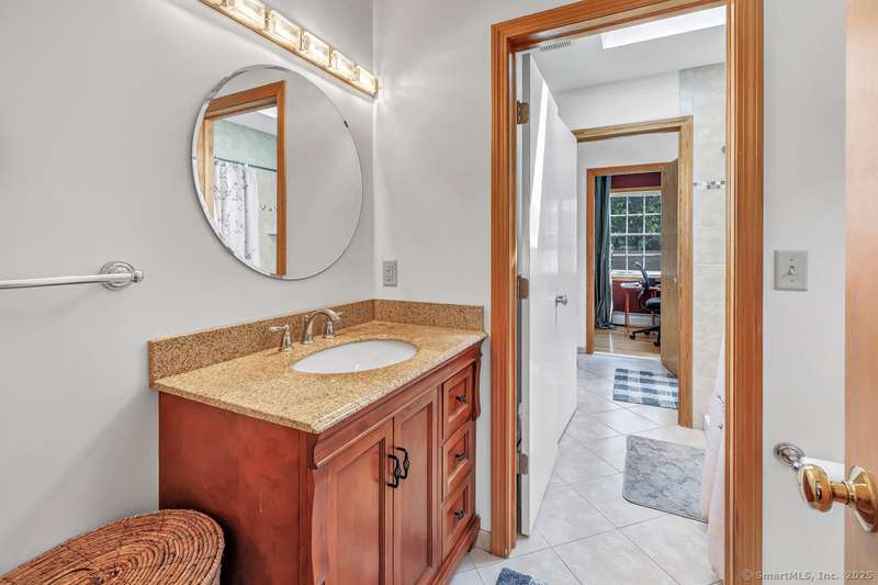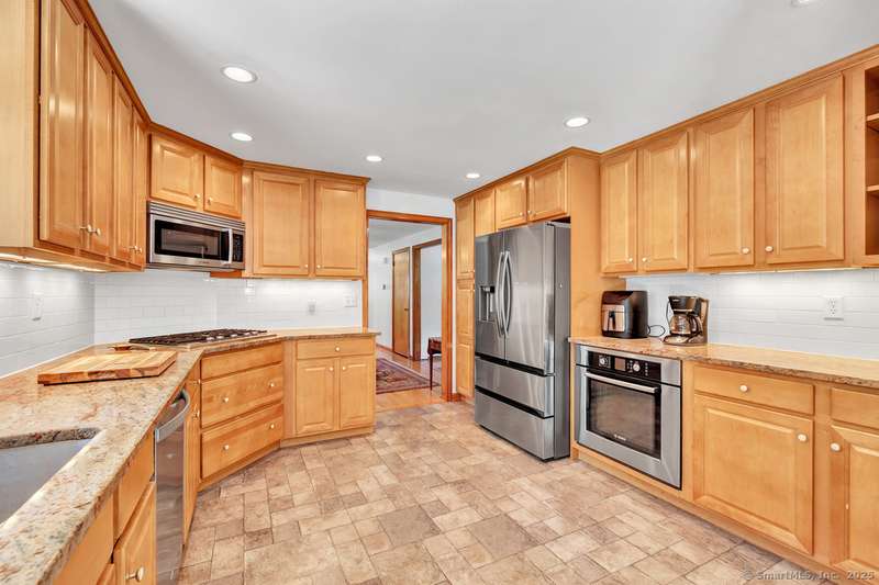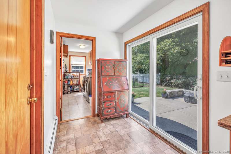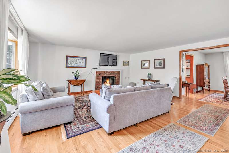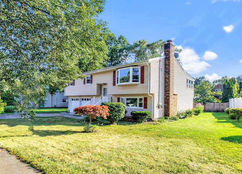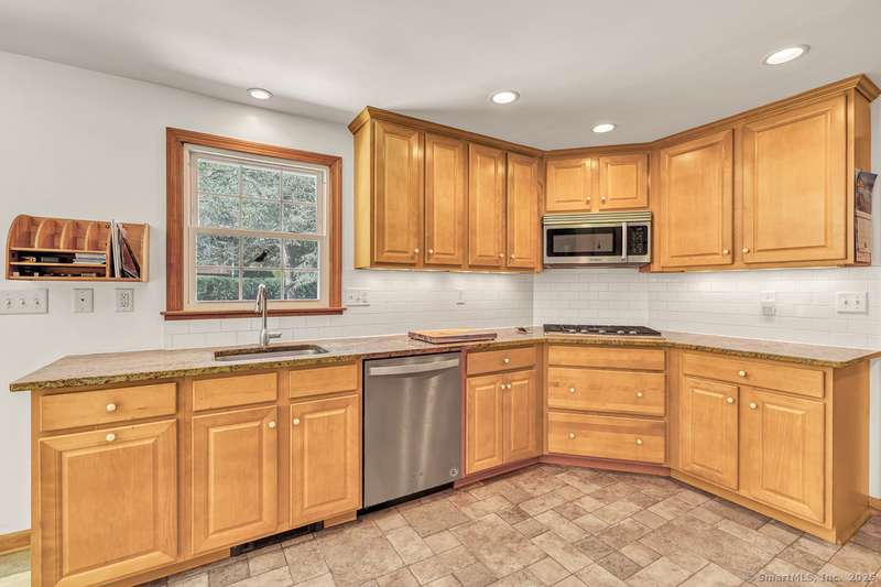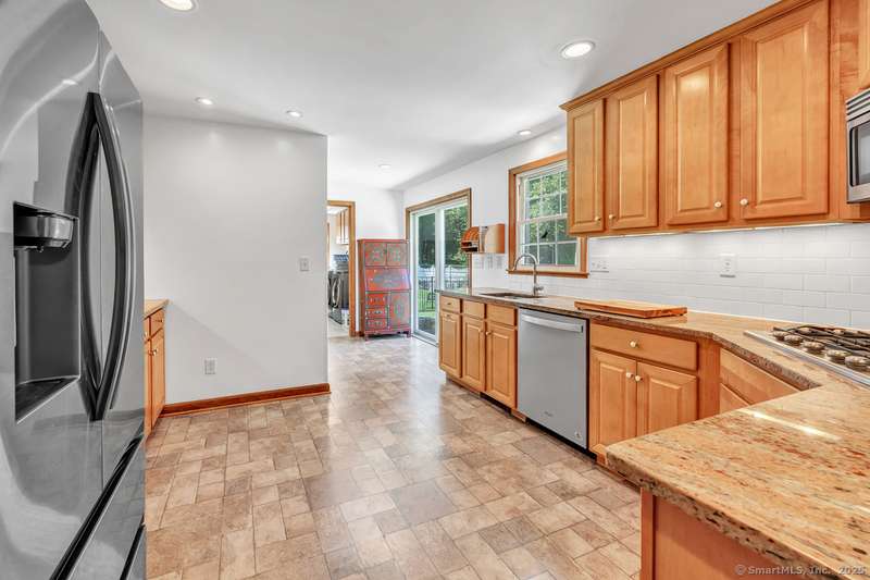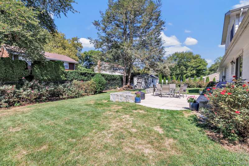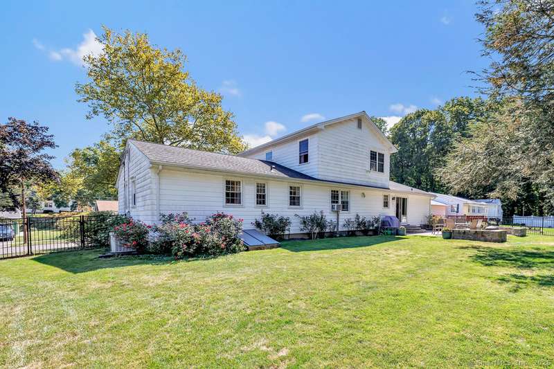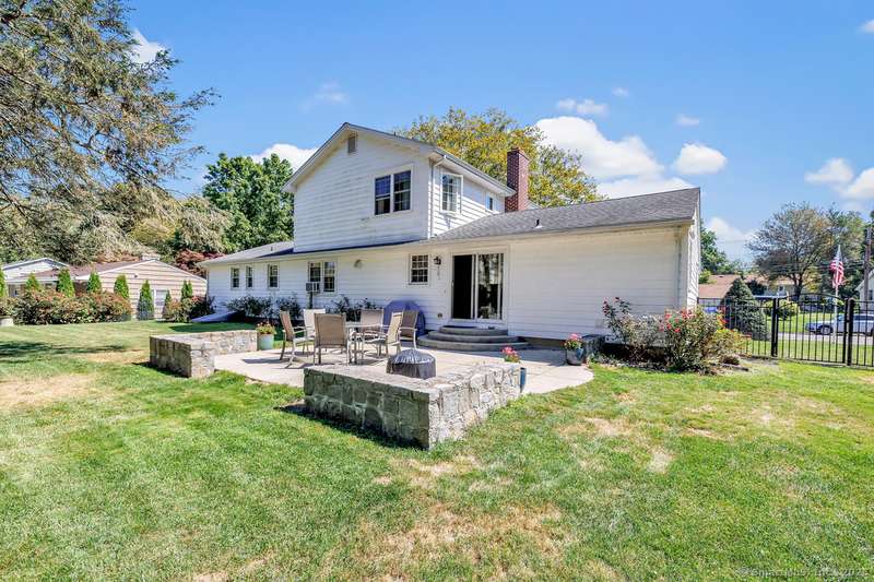 Welcome to this spacious 2,183 sq. ft. Colonial, tucked away on a quiet dead-end street near Bunnell School. A major renovation in 2010 expanded the home with a full second floor and included new siding, roof, and windows, giving the property modern updates and lasting value. This home is designed to offer comfort and versatility, featuring hardwood floors throughout most of the living spaces. Step inside to a large living room with a gas fireplace, seamlessly flowing into a bright dining room and a fully equipped kitchen with stainless steel appliances, a gas cooktop, and granite countertops. Just off the kitchen, you'll find a convenient laundry room, along with sliders that open to a beautiful stone patio overlooking the fully fenced yard, perfect for gatherings or quiet evenings at home. The main level offers three bedrooms, including one with a private half bath, along with a full bath for convenience. Upstairs, the spacious primary suite boasts a walk-in closet and Jack-and-Jill
