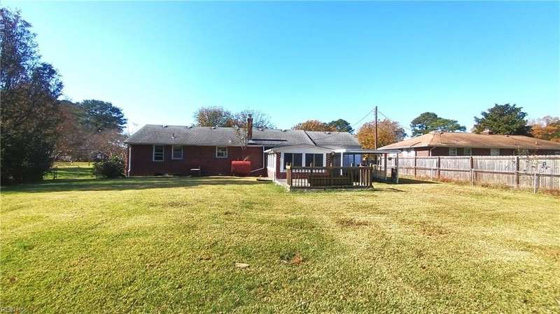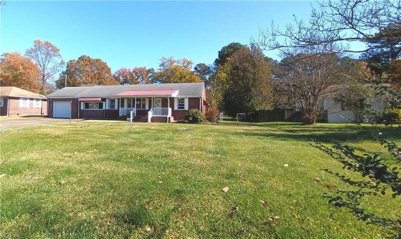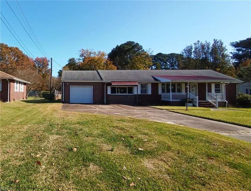 This three-bedroom brick ranch features an attached garage and is situated on a nearly half-acre lot. The property offers a full front covered porch as well as a rear covered patio. Interior highlights include a spacious kitchen, living room, and dining room. The versatile Florida Room may serve as a third bedroom if desired. Additional amenities include a full-sized utility room with a half bath. Conveniently located near Sentara Leigh, the home provides easy access to shopping, dining, entertainment, and major interstates.