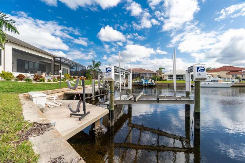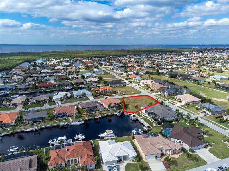 This OVERSIZED WATERFRONT SAILBOAT DIRECT ACCESS lot is on a quiet street that would be a great place to build your dream home and retire, or raise your family. This lot has a 10,000 pound boat lift and 8 x 18 Concrete dock and is just over a third of an acre. This location is an estimated 15 minute boat ride from the entrance to Ponce De Leon Canal or Alligator Creek Via Buckley's pass. This gives you amazing access with a choice of direction. Whether heading to downtown via boat for dinner or heading to Boca Grande or Cayo Costa this option can save you time and fuel on your journey. Less than 7 miles to Punta Gorda Airport or I75 makes this location an easy commute to almost anywhere, and only 4 miles to Ponce De Leon Park with amazing sunsets, 4 miles to Punta Gorda Historic district and waterfront park with lots of shopping and dining options. Tampa Bay Rays spring training and the fairgrounds are just minutes away, also multiple golf courses and some of the best boating and fishing in all of Florida. Red Soxs, Orioles, Twins and Braves spring training all within an hour’s drive. All measurements are deemed correct but should be verified to the Buyers satisfaction.