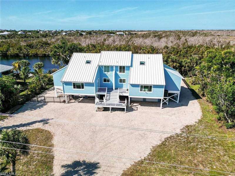 What an awesome rental! Discover the pinnacle of serene island living in this elevated residence less than 1/2 mile away from the best secluded Gulf beaches (deeded beach access) on the Island! Located on iconic Rabbit road, the pictures tell the visual story of a home that lives big with almost 2,000 square feet of living area. Boasting expansive back yard views of preserve landscapes and tranquil Sanibel river waters visible from nearly every room, this home is a haven of relaxation with meticulous high end upgrades. Step into a culinary paradise with stainless steel appliances, including a 36" Verona range, complemented by newer soft-close cabinets, granite countertops, and thoughtful additions like a pot filler and wet bar sink. The spacious kitchen seamlessly flows into an amazing great room adorned with shiplap walls, vaulted ceilings, and generous picture windows that amplify the sense of space and flood the interiors with natural light. Two guest bedrooms, one featuring a private balcony with more water and preserve views, and another with a convenient jack-and-jill bathroom, offer comfortable coastal living. Ascend to the second-floor primary suite, boasting its own private balcony overlooking the lush preserve and water, with a luxurious master bathroom complete with a walk-in closet. Take advantage of private beach entrances at the end of Rabbit Road and/or a convenient bike path right behind the property on the protected preserve. Additional features include a two-car garage with ample storage space beneath the home, a low-maintenance backyard brimming with potential, and recent upgrades including a 2023 metal roof, 2024 PGT impact-resistant windows and sliders, 2024 Hardie board siding, and a newer HVAC system. Sanibel Island is THE shelling capital of the world, and consistently is recognized throughout the globe as one of the best family vacation destinations. Now is the perfect moment to experience paradise and immerse yourself in the wonderful transformation of Sanibel Island.