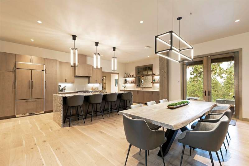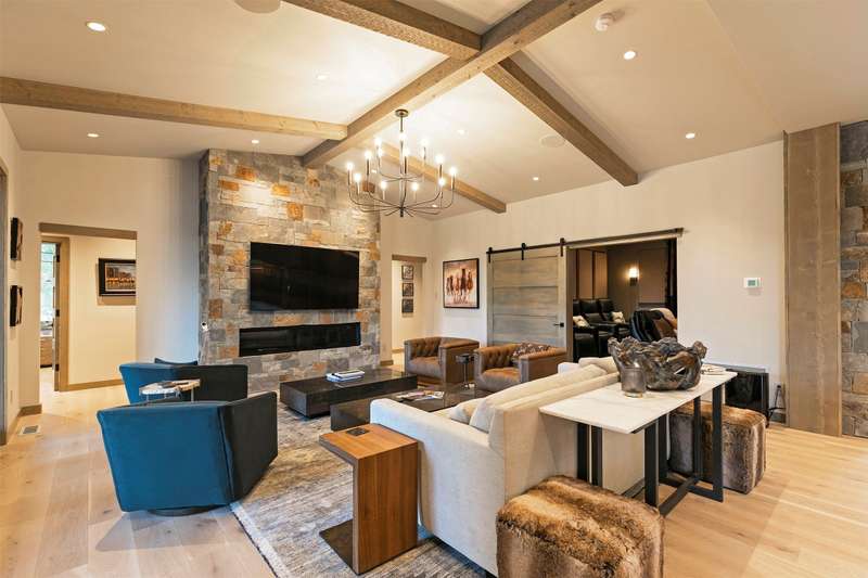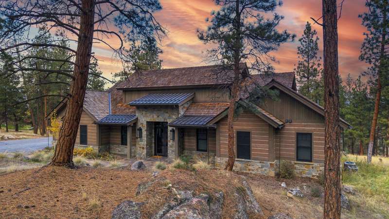 Stunning new western/modern home w/ 4 beds, 4.5 baths offers a blend of nature & convenience! Just a stroll to the Stock Farm golf course, clubhouse, & more, offering exceptional views & privacy. Feel welcomed as you enter this fabulous open-concept home with an expansive, magical outdoor space, perfect for gatherings of up to 40 guests, or quiet evenings with visits from deer, turkeys, & more. Inside, the expansive primary suite features an office nook, private laundry, & a large shower & tub. Each thoughtfully planned guest room offers its own ensuite, ensuring privacy & space for everyone & a private laundry area. The den, or the "Moose Media Room", is located off the living room & offers entertainment galore! The kitchen, featuring a butler's pantry with a sliding door, w/ plenty of room for meal prep, 4-person bar seating, an 8-person dining table, & over 17 outdoor seats around the custom firepit. Basement wine storage. Finished oversized garage. Sprinkler system for landscaping. See video. RO Water system for home, mudroom, private driveway ***Please contact listing broker regarding the use of Stock Farm amenities. Stock Farm membership is not included with the purchase of property***